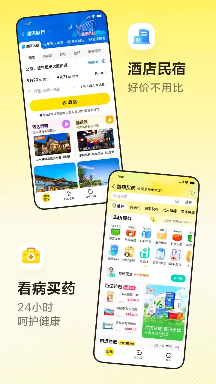 【特色服务】 1. 吃喝玩乐一应俱全 ◇在线预订餐厅桌位,省时安心不用等位 ◇外卖订餐水果宵夜,酒店旅游周边推荐 ◇美团跑腿,一小时,全城送 ◇美团优选购生鲜,新鲜实惠,当日下单,次日自提 ◇美团拼好饭,提供极具性价比的外卖选择,0配送费,无起送价 ◇小象超市,美团自营生鲜百货平台,你需要的一站购齐,快至30分钟送达,让你省心省力省时间! ◇美团地图全面升级,点击店铺地址栏,提供检索、路线规划等特色功能,更多惊喜功能期待您去发现 2. 旅游出行一站搞定 ◇机票低价优质出行,全国汽车票在线预订更优惠 ◇美团打车优惠不停,快车专车出租车便捷出发 ◇美团单车电单车免押金骑行,更优惠更便捷 ◇查公交、查到站,车辆到站提前提醒,一站式安心乘公交 3. 全国影讯在线选座 ◇影院会员卡商家券,电影购票享超值更优惠 ◇热映影片团购订座,大片预告电影抢先看起 【用户帮助】 感谢您使用美团手机客户端,使用中有任何问题可通过以下方式查询解决: 1.客户端查询入口:我的 => 客服中心 2.官方网站:http://www.meituan.com/