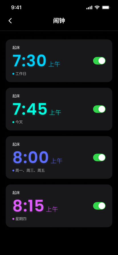 Alarm Clock 是一款可以帮助您彻底醒来的通用应用。准时醒来,享受听您最喜欢的音乐! 告别那些无用的、功能单一的闹钟!我们的应用将帮助您:每天早晨提前到达工作,下午准时参加重要会议,晚上设定烹饪最爱菜肴的时间。 ~~~ 特点 ~~~ ~ 使用你最喜欢的铃声和旋律 在美妙的音乐和声音中醒来,让你的觉醒变得愉快! ~ 解决数学问题,唤醒你的大脑 做一些脑力锻炼,早晨伸展一下大脑。选择难度,解答题目并关闭闹钟! ~ 通过图案和不同的颜色训练记忆 通过记忆游戏关闭闹钟:还有什么比这更好?重复屏幕上的图案或颜色顺序,让早晨变得有益且有趣。 ~ 睡眠模式 舒适入睡!启用快速睡眠模式,享受美妙的旋律,直到你完全沉浸在睡眠中。应用将在触发特殊计时器后自动关闭旋律。 ~ 倒计时器 你想倒计时到某个特定时间,但不想设置秒表?启动倒计时器,信号将在指定时间结束时提醒你。 ~ 时间播报 将Alarm Clock转为床头钟模式,它会随时告诉你准确的时间,无论你在哪里。 ~ 手电筒 随时保持光源。只需一键即可启动手电筒! 重要信息: - 该应用程序需要在后台运行,以便您可以看到已经响起的警报。 - 应用程序需要访问该位置以更新天气预报。 - 应用程序需要激活通知系统。 订阅 订阅并获得: 1.表盘定制。 2. 关闭警报的附加方法。 3.无限睡眠定时器。 4. 会说话的时钟。 5.没有广告。 通过高级访问解锁所有酷主题: - 通过获得 3 天的免费试用期来评估其优势。 3 天后,试用期将自动切换为每周付费订阅。 - 付费订阅分为 3 种类型:每周、每月和每年。 - 每周付费订阅的费用为 9.99 美元。每月 - 19.99 美元。年度 - 49.99 美元。 - 金额将在确认购买时从您的 Apple ID 帐户中扣除。 - 您可以随时取消订阅或试用期,但不得迟于当前订阅期结束前 24 小时。否则它将自动更新。 - 您的帐户将在当前期限结束前 24 小时内收取续订费用。 - 付款后,您可以管理您的订阅并在您的帐户设置中关闭自动续订。 - 免费期间的任何未使用部分将在购买订阅后被没收。 - 阅读我们的隐私政策 https://appenvisions.com/privacy.html。 和 EULA https://appenvisions.com/eula.html