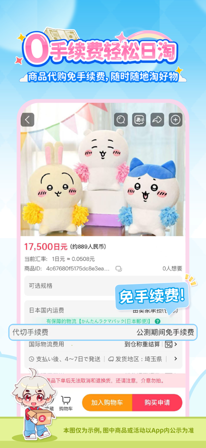 【0手续费!海量日淘一站畅购】 直通 Mercari、亚马逊、ZOZOTOWN、乐天、闪电市场、骏河屋、Jumpcs 等 40+ 个日本热门购物网站,丰富商品一站购齐!从二次元周边、动漫新品、明星周边,到美妆杂志、家电数码、日韩潮流单品,每日同步更新,选择多样,轻松挑选心仪好物。 【一键翻译,购物更轻松】 支持中日文一键切换、以图搜物等功能,界面简洁清晰,操作便捷。无需懂日语,也能顺畅浏览商品详情,快速找到心仪好物。 【多种物流方式,安心直达】 支持 EMS、纸飞机专线、DHL 快线等多种配送方式,可根据需求选择空运或海运。全程物流轨迹可查询,随时掌握包裹动态,购物更放心。 【价格透明,自助下单更省心】 商品价格公开透明,全程自助下单,轻松掌控每一笔花费。与日本官网同步更新,及时掌握新品动态,享受超值购物体验! 【优惠活动不断,福利持续放送】 不定期推出限时优惠与折扣活动,助您畅买无忧,天天都有新惊喜!根据您的购物习惯和兴趣,智能推荐专属好物,发现更多您喜爱的宝藏商品。 【专属客服支持,服务更贴心】 提供专属客服服务,协助解答日淘相关问题,帮助您顺利完成每一次购物。