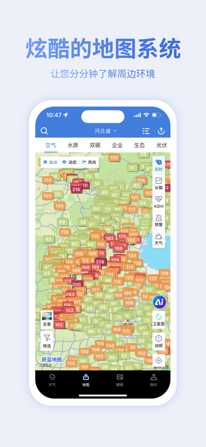 开发并提供强大的制图和空间分析技术的全球地理信息系统(GIS)领先企业Esri授予蔚蓝地图2018年度最佳应用奖! 【产品简介】 当雾霾来袭,你是否也曾无奈?周末想带孩子郊游,你是否特别希望赶上个好天气?身边的大烟囱,或者是臭河沟,是否也曾让你无力无助?那就试试蔚蓝地图吧! 当环保遇上大数据时代,有一群环保公益人把枯燥的空气、天气、水质和污染源数据汇集在地图上,还玩成了一个APP,从1.0,2.0,3.0玩到了4.0,这个APP从“污染地图”,升级成为“蔚蓝地图”。 这个团队叫做公众环境研究中心,简称IPE。他们可不是孤军奋战,看看它的“朋友圈”:阿拉善SEE基金会,阿里巴巴公益基金会,当然更少不了环保部门、公益组织伙伴,关心空气污染、雾霾监测、天气预报的公益环保志愿者…… 【产品特点】 一、可视化动态的全球天气及空气信息图:来源权威且精确到区县的天气及空气质量动态预报,让你对蓝天和雾霾了然于胸,更有气象灾害和雾霾监测预警,台风动向也尽在掌控,不管阴晴风雨都保持淡定;口罩佩戴、运动、花粉浓度……贴心的生活服务提示全面呵护你的健康。 二、晒美景、晒污染、晒生活,与同一片蓝天下的万千蓝友同呼吸、共命运,分享喜怒哀乐。 三、直通相关部委的污染举报平台。如果身边的黑臭河让你烦恼,你可以通过小蓝向两部委官方平台举报;如果企业超标让你忧虑,你可以把它晒到微博和朋友圈,别忘了@当地环保部门的官微。 四、环保、健康、科普类优质资讯一网打尽,每日一篇热文推送,助你实现从小白到环保人的华丽蜕变。 五、全地图模式呈现污染源数据,带你全方位了解空气、水、土壤等周边环境风险,支持百万家企业环境信息随时查询、及时推送、实时监督,举手之劳便可推动污染治理,为4亿个家庭点亮环境健康之路。 六、带你全方位了解品牌在华供应链的环境表现,作出绿色选择,为帮助改善空气、水和土壤环境的供应商点赞,还可以一键分享到新浪微博@品牌官微。 七、专业的环境统计: 来自气象局的实时天气数据及精准天气预报; 取自环保局的2000多个空气站点分省市排名,当时、当日、当月、当年的空气污染雾霾监测数据统计,9000多家大企业污染排放的日均值分析…… 这些深埋的专业数据,欢迎有需求的朋友们找小蓝挖掘! 保护家人,保护孩子,保护我们的碧水蓝天,蔚蓝地图4.0等你来约! 【机构获得荣誉】 2018年度Esri最佳应用奖 RAWON MAGSAYSAY AWARDEES 第三届 SEE•TNC 生态奖 第六届 母亲河奖 杜邦杯环境新闻人物 网易公益行动奖 GOLDMAN ENVIRONMENTAL PRIZE 年度人物 公民行动奖 公益推动中国——可持续未来将 中华公益人物 改革开放三十年环保共享人物 时尚先生十五周年经典人物 年度人物 绿动•中国经济十大领军人物 第一届 我是环保明星 第三届 中国社会责任年会•年度绿事件 第三届 中国社会责任年会•年度绿领袖 年度绿色之心 第五届 SEE•TNC 评委会特别奖 绿色中国年度人物 中国软科学奖 绿色中国年度焦点人物 环保奖 SKOLL FOUNDATION 北京市人民政府表彰奖励先进个人 【联系我们】 官方网站:http://www.ipe.org.cn 官方微博:http://weibo.com/u/5042247906 微 信:weilanditu 客 服 QQ:2647100168 投诉建议:01067189470转8025 【特别感谢】 感谢关注空气污染、热心雾霾监测、发布天气预报的你们!