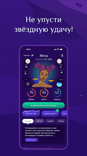 AstroStar 是您探索占星术和神秘学世界的私人指南。我们结合了精准的计算算法和古老的智慧,帮助您更好地了解自己和未来。<br><br>内容包括:<br><br>🔮 塔罗牌阵(全新!)<br><br>提出您的问题,即可获得详细的牌面解读。无论是爱情、事业还是艰难抉择,塔罗牌都会为您指明方向。<br><br>✨ 个人星座运势<br><br>精准预测所有星座的运势:白羊座、金牛座、双子座、巨蟹座、狮子座、处女座、天秤座、天蝎座、射手座、摩羯座、水瓶座和双鱼座。了解星象对今天、明天、本周或本月的运势预测。<br><br>🌌 出生星盘<br><br>深入分析您的性格。揭示您出生时就隐藏的性格和人生目标的秘密。<br><br>❤️ 星座配对<br><br>从五个方面查看您与伴侣、朋友或同事的配对情况。探索你们关系的优势和潜在发展空间。<br><br>✋ 手相<br><br>扫描你的手掌:感情线、智慧线和生命线将揭示你的命运。(注意:仅当当前版本中的手掌扫描功能正常时才选择此选项。)<br><br>为什么选择 AstroStar:<br><br>所有功能均可用:不受限制地使用应用程序的所有功能。<br><br>精准度:独特的占星计算算法。<br><br>便捷性:订单历史记录、重要占星事件通知以及直观的界面。<br><br>立即安装 AstroStar,掌握掌控命运的钥匙!