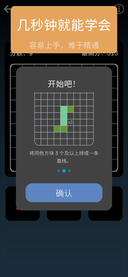 注意啦!注意啦!注意啦!!!一旦你开始游戏,那就停不下来啦! 免费好玩的星星方块游戏,玩法简单又有趣,小白玩家都能轻松上手! 游戏规则: --你只需要将下面的方块拖动到10x10的方格内,达成10格满行或者满列就能达成消除; --没有时间限制,无颜色匹配,没有三消匹配规则,只需要根据方块形状将其放入10x10方格内,并达成消除即可; --注意不要让你的方块无处可放哦! 游戏理念: --只要你将方块拖动到10x10方格内,即可得分;倘若你达成消除,可以获得额外的奖励分; --你的任务就是尽可能地拿到更高得分。 玩星星方块游戏,不仅能锻炼你的逻辑思维,还能训练你的心智! 现在,准备好来开始挑战这个方块益智游戏了么?快点叫上你的小伙伴来一起游戏吧!