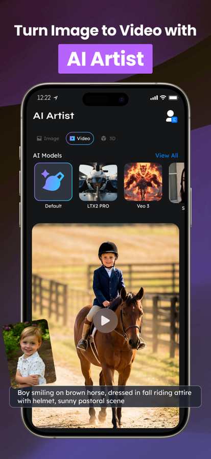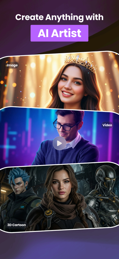 Unleash Your Creativity with AI – Create Stunning Images, Avatars & Videos in Seconds! Step into a world where your imagination becomes reality. Whether you're a digital artist, content creator, or someone who loves visual storytelling, our powerful AI engine helps bring your ideas to life — instantly and effortlessly. AI Image Generator: Describe it and watch it appear. From hyper-realistic portraits to fantasy landscapes, our AI art tool transforms simple text prompts into stunning images in seconds. Choose from countless styles, moods, and models to match your vision and create visuals that truly stand out. Text-to-Video Creation: Turn your words into captivating videos with just a few taps. Whether you're creating a promo, a short story, or a social media reel, our text-to-video feature lets you generate animations, add voiceovers, and create engaging content — no editing skills required. AI Avatar Maker: Create lifelike avatars that reflect your unique personality. From anime-style characters to professional headshots or fantasy themes, explore endless possibilities and styles to craft a version of “you” like never before. A Creative Community, Built for You: Join a growing global network of creators. Share your art, get inspired by others, and collaborate with a vibrant community that celebrates creativity. Every masterpiece you create has the potential to inspire someone else. Simple Profile & Gallery Management: Effortlessly manage your profile, artwork, and creations. With a clean and intuitive interface, organizing, saving, and sharing your content is as seamless as creating it. Built for All Creators: From hobbyists to professionals, everyone can explore our AI-powered studio and unlock tools for: Photo enhancement & retouching Background removal Anime transformations AI avatars and stickers Video reels and effects Custom logo, QR, and tattoo generators ...and much more. Whether you’re designing for fun, building a personal brand, or launching a business — our tools are designed to help you stand out, go viral, and turn your creativity into impact. Start Creating Today! Download now and explore the future of AI creativity in the palm of your hand. Subscription Info: Unlock premium features with a subscription plan tailored to your needs — weekly, monthly, or yearly. Subscriptions auto-renew unless turned off 24 hours before the end of the current period. You can manage your subscription and auto-renewal in your iOS account settings. Payment will be charged to your Apple ID upon confirmation. Any unused portion of a free trial will be forfeited once a subscription is purchased. Privacy & Terms: We care about your privacy. Your data is handled with care, in accordance with our policies: Terms of Use: https://aiartistpro.app/terms-of-use/ Privacy Policy: https://aiartistpro.app/privacy-policy/ Need help or have suggestions? Reach out at: support@aiartistpro.app