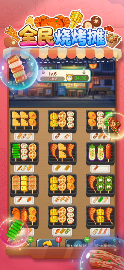 夜幕升火,香气上头!配对三串相同烤串清盘通关,研发创意夜宵菜单,将破败客栈打造成热闹非凡的深夜名店。 在交错摆放的烤盘上,找出三串相同的烤串触发消除,清理空间、连锁 combos,完成每个关卡的目标。营业间隙,研发融合现代灵感的全新烤串口味,装修扩建你的客栈,吸引从文人墨客、江湖侠客到达官贵人的各路宾客。 随着名气提升,特殊访客与限时订单接踵而来。善用资源、掌握火候与节奏,将小小旅舍经营为闻名四方的深夜食堂,让炭火与古韵在夜色中闪耀。 特色亮点 1.配对消除烤串:找出三串相同烤串即可触发消除,完成关卡目标。 2.深夜客栈经营:升级设施、解锁烤台与功能,优化营运流程。 3.创新菜谱研发:以现代风味启发古味烤串,惊艳挑剔宾客。 4.特殊访客与限时订单:在时限压力下完成客制需求,获取高额奖励。 5.古风沉浸氛围:精致手绘场景与古风乐曲,重现繁华夜市。 6.成长与扩张:从破败小店一路成长为知名夜宵地标。 玩法说明 1.寻找三串相同烤串,即可触发配对消除并清理烤盘空间,达成每关消除目标即可通关。 2.研发新菜谱、管理食材与燃料,将利润再投资至客栈升级。 3.应对贵客的限时订单,赚取稀有素材与装饰。 4.面对竞争对手,以创新口味与高效服务脱颖而出。 为何你会喜欢 1.轻松上手却耐玩,将消除爽感与轻度模拟完美结合。 2.以美食为核心的夜市世界观,氛围浓郁、细节满满。 3.不断解锁新食谱、工具、事件与成就,持续带来新鲜感。