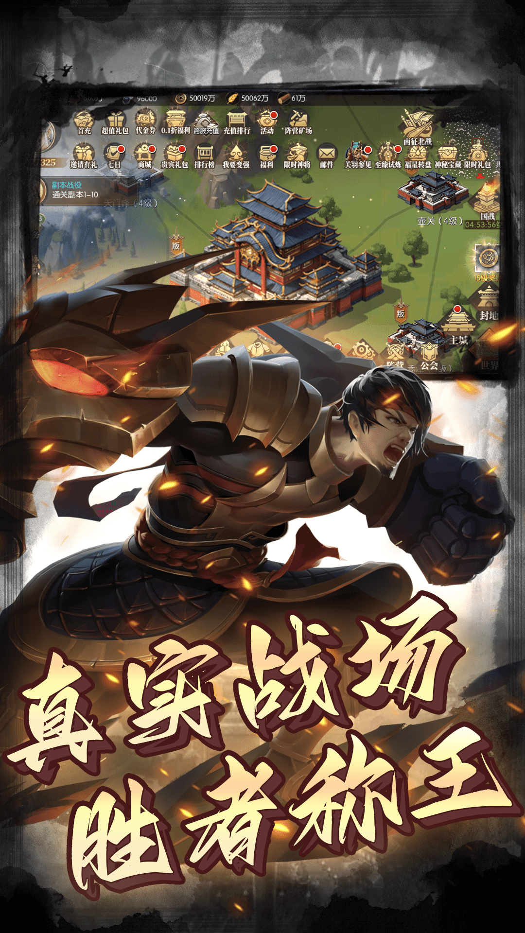 百万主公的策略对抗战场!超经典三国策略SLG游戏,全平台700万玩家力荐下载,斩获 9 .0荣登高分游戏,登录送极品红将助力主公一统天下!<br><br>【万人国战 策略对抗】<br>万人同局,群雄争霸,夺城、夺关,超大规模国战即时开打,用策略告诉群雄谁是谋略之王。<br><br>【群英汇聚 计策加成】<br>各路神将听候主公的差遣,任由君自由组合阵容。军师技、羁绊技、情义技,计策加成,助君一统天下!<br><br>【排兵布阵 巧用克制】<br>四大相克兵种,侦测敌情,巧妙布局,以寡敌众,尽显足智多谋。<br><br>【百座城池 群雄争霸】<br>376座城池,还原三国古战场风貌,真实割据,巧用地理优势,实现三国一统。