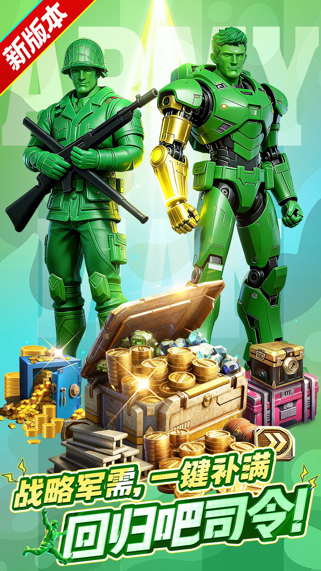呼叫司令回归,呼叫司令回归,新版本已启动!<br>--------------------------------------------<br>我们还在期待着你的指挥!墨菲!我们再打一场吗?<br>打动5000万玩家的重磅策略游戏来袭,把房间变成战场,重新回到你童年中美好的时光!<br>精心描绘的桌面战争、各具魅力的玩具英雄、巧妙融合操作的战斗方式、极具挑战的防御关卡、和朋友们一起携手战斗——带领绿色的小小兵团,驾驶遥控飞机,呼叫百变英雄来支持,把房间折腾个天翻地覆!<br><br>“我们很久没有看到指挥官了……”<br>“他是牺牲了吗?”<br>“不,他只是长大了。”<br><br>童年不会被遗忘,玩具世界有你的参与才会完整。<br>欢迎回来,指挥官!<br><br>-游戏特色-<br>【袖珍战争,妙趣横生】<br>• 在卧室里修建指挥中心,存钱罐做金库,小火车送物资,磁铁来收集金属,每一个日用品都有别出心裁的用途;<br>• 在厨房、客厅、盥洗室、花园到处作战,精妙绝伦的美术制作让战斗激烈精彩。<br><br>【发展实力,壮大军团】<br>• 创新兵种技能搭配系统,根据作战需求任意组合;<br>• 找寻几十款栩栩如生的玩具担当英雄,所有的英雄都拥有其独特的技能和攻击方式;<br>• 升级你的小小军团,坦克、火炮、火焰喷射兵、狙击手……让敌人知道你的厉害!<br><br>【超越对手,步步惊心】<br>• 超越其他人,占领更多的领土,让你的影响力与日俱增;<br>• 修筑防御工事来抵抗敌人的进攻。<br><br>【战术多变,激烈攻防】<br>• 谨慎选择你的兵力搭配和英雄玩具,精妙的策略绝对胜过单纯的数量优势;<br>• 把握行动时机,多侦察对手胜过鲁莽的攻击;<br>• 多种策略战争与塔防玩法全面开启,点击即玩材料经验双丰收!<br><br>【同玩同乐,广交朋友】<br>• 联盟系统帮助你集合有共同爱好的朋友们,集结军队和盟友一起向你们的敌人发动史诗级的团战。<br>• 处理风云万变的联盟关系,联盟间不仅相互帮助,有时候也会彼此竞争。<br>• 随时与全国各地玩家进行聊天,分享乐趣。与盟友一起商讨策略、互补协助。