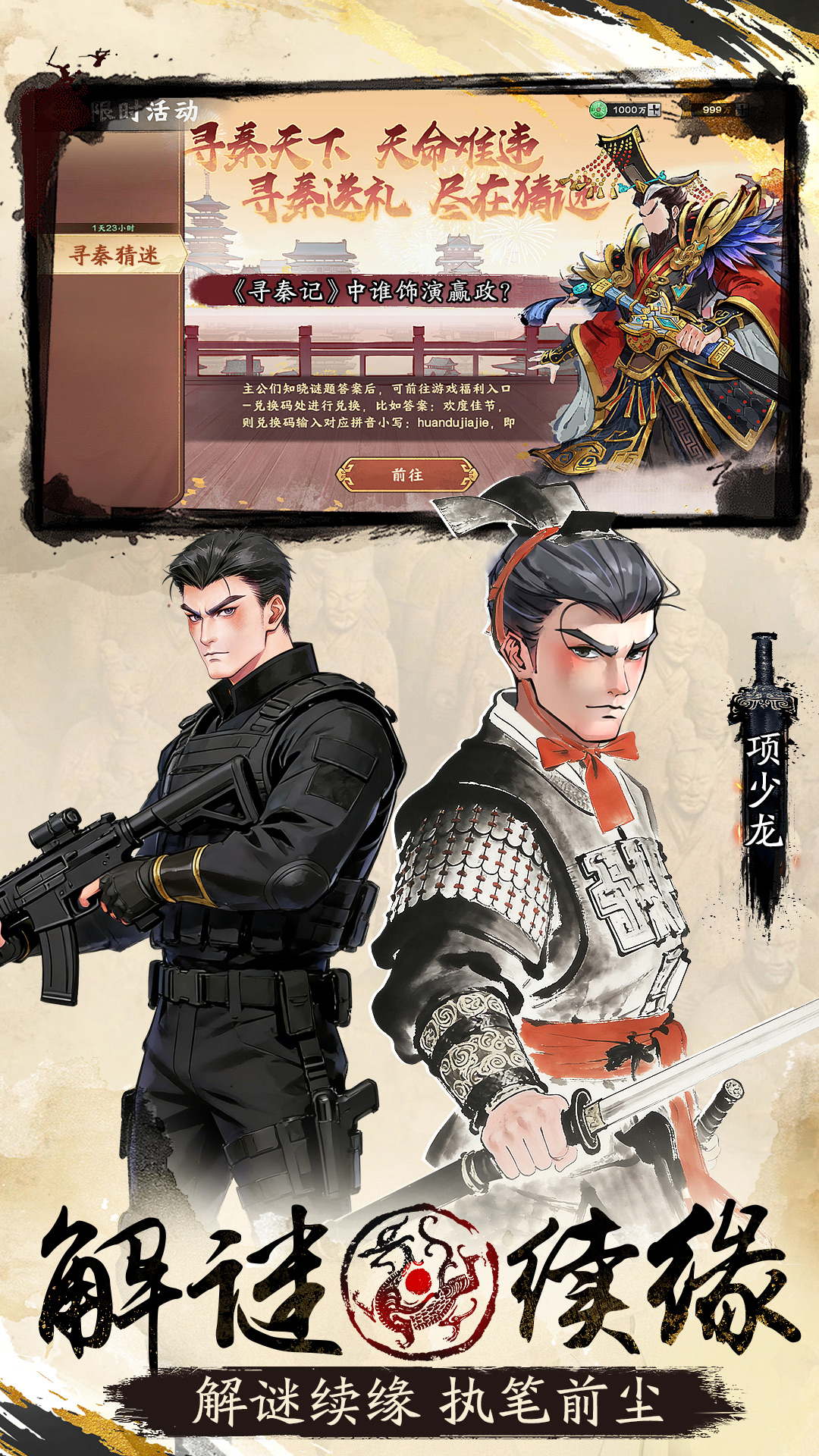 【 寻秦福利】兑换码:vvip6666、vvip8888、vvip9999<br>--------------------------------------------<br>【登录即享帝王特权】<br>穿越时空魂穿项少龙,辅助吾皇执掌天下,登录赠自选橙将礼包!从秦皇嬴政的虎狼之师到汉武刘彻的河西铁骑,从白起的杀神军团到霍去病的封狼居胥,百位名将任君挑选,亲手组建专属虎贲军!<br>【月卡福利颠覆认知】<br>上线即领30天福利月卡,每日可兑换300金布+稀有资源包!累计登录7日再送10 连抽,更有全赛季限时自选卡包,让您告别 “二等一” 的痛苦,心仪阵容一键成型!<br>【超两万金布疯狂派送】<br>每日转盘出随机金布,副本通关额外掉落1000 金布,连野外采集都能触发金布雨彩蛋!轻松实现资源自由,打造百万雄师不费吹灰之力!<br>--------------------------------------------<br>[模拟经营]:从咸阳宫到未央宫,亲自规划农田、兵营、市集,体验 “耕战立国” 的乐趣!<br>[实时国战]:率领军团争夺函谷关、巨鹿古战场,与全服玩家上演 “围魏救赵”“暗度陈仓” 的经典战役!<br>[名将列传]:深度还原长平之战、漠北之战等历史场景,解锁专属剧情奖励!<br>--------------------------------------------<br>“赳赳老秦,共赴国难!”《秦皇汉武》邀您书写属于自己的帝王传奇!