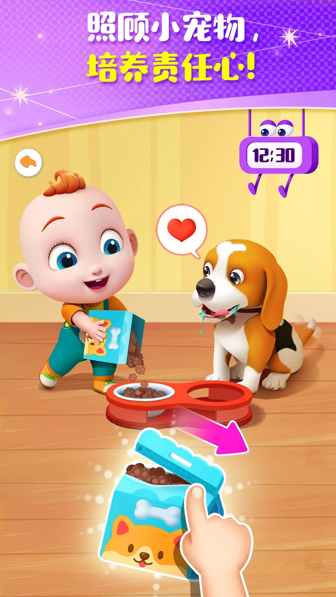 宝宝们的成长好伙伴JoJo来咯! 在休闲益智App【JoJo成长日记】里,宝宝不但可以和JoJo学习生活常识、生活技能,还能和JoJo的家人们,以及淘气小狗Bingo一起欢乐玩耍。 App里新的一天又开始咯!宝宝想知道JoJo和家人们在干什么吗?那就快来【JoJo成长日记】看看吧! 学习刷牙洗脸,掌握清洁好方法 JoJo正在刷牙,可他挤了太多牙膏,还把泡沫弄得到处都是,宝宝可别学他哦!跟JoJo的哥哥,了解正确步骤吧:拿起牙刷,挤上适量牙膏,上刷刷、下刷刷……牙齿变得亮晶晶啦! 刷牙完毕,还需清洗小脸!哥哥继续“传授”清洁小技巧:使用毛巾,左右擦拭脸颊,和脸上的污渍say goodbye;还没结束!接着,再用毛巾擦擦耳朵,还能清除脏脏的耳垢哦。 帮忙照顾宠物,培养满满责任心 是谁在汪汪叫?是小狗Bingo!它的肚子快饿瘪了,需要进行喂食,宝宝赶紧来帮帮忙:撕开狗粮袋,倒满宠物餐盆。Bingo好像没吃饱?使用开罐器,再为它开一个宠物罐头吧。 Bingo吃饱喝足,出去“兜风”咯!呀,它玩得一身脏,还需赶紧清洗:先用夹子,清理Bingo身上的杂草;举起刷子,刷洗爪子上的泥块;为浴花挤上沐浴露,还能给Bingo做个泡泡Spa! 参与益智问答,事物认知更牢固 益智问答的时间到咯!宝宝和JoJo,一起来参加吧:JoJo的妈妈拿出了大象、老虎、棒棒糖等卡通贴纸,认真观察、思考,选择正确的卡通贴纸,就能通过考验,宝宝快来试一试。 问答开始!洗脸要用衣服、毛巾or围巾?是毛巾,宝宝快选择毛巾贴纸;小狗Bingo喜欢吃什么?没错,此时正该选择狗粮贴纸!经过问答,宝宝对这些事物认知,是不是更牢固了? 在【JoJo成长日记】里,宝宝还能和JoJo一起唱儿歌、快乐舞蹈。瞧,JoJo正等宝宝去他家做客呢!宝宝快来体验更多欢乐日常,学习丰富趣味常识和实用技能吧。 产品亮点 1、可爱JoJo相伴,增添宝宝亲近感,更容易吸引宝宝体验、学习; 2、清晨洗漱、照顾小宠物等多种日常主题,帮助宝宝学会多项生活技能; 3、采用动画+互动模式,提高宝宝兴趣,给宝宝有趣的沉浸式体验; 4、休闲益智的App互动环节,让宝宝轻松快乐地收获多种知识。 宝宝巴士BabyBus是专注打造儿童启蒙数字产品的原创品牌,累计服务全球5亿家庭用户。宝宝巴士秉承“快乐启蒙”的理念,用奇妙有趣的方式,为儿童量身定制以“好听国学故事、好看儿歌动画、好玩互动APP”为特征的海量数字启蒙内容,让孩子趣味认知、感受“真、善、美”。 欢迎联系 微博:@宝宝巴士 官网:http://www.babybus.com 邮箱:cn@babybus.com