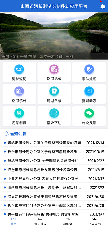 可实现河长巡河、巡河过程中可拍摄照片并记录发现的问题事件,再由相关部门进行处置、上报。可查询巡河统计、河路名录、通讯录、新闻、意见建议等。
