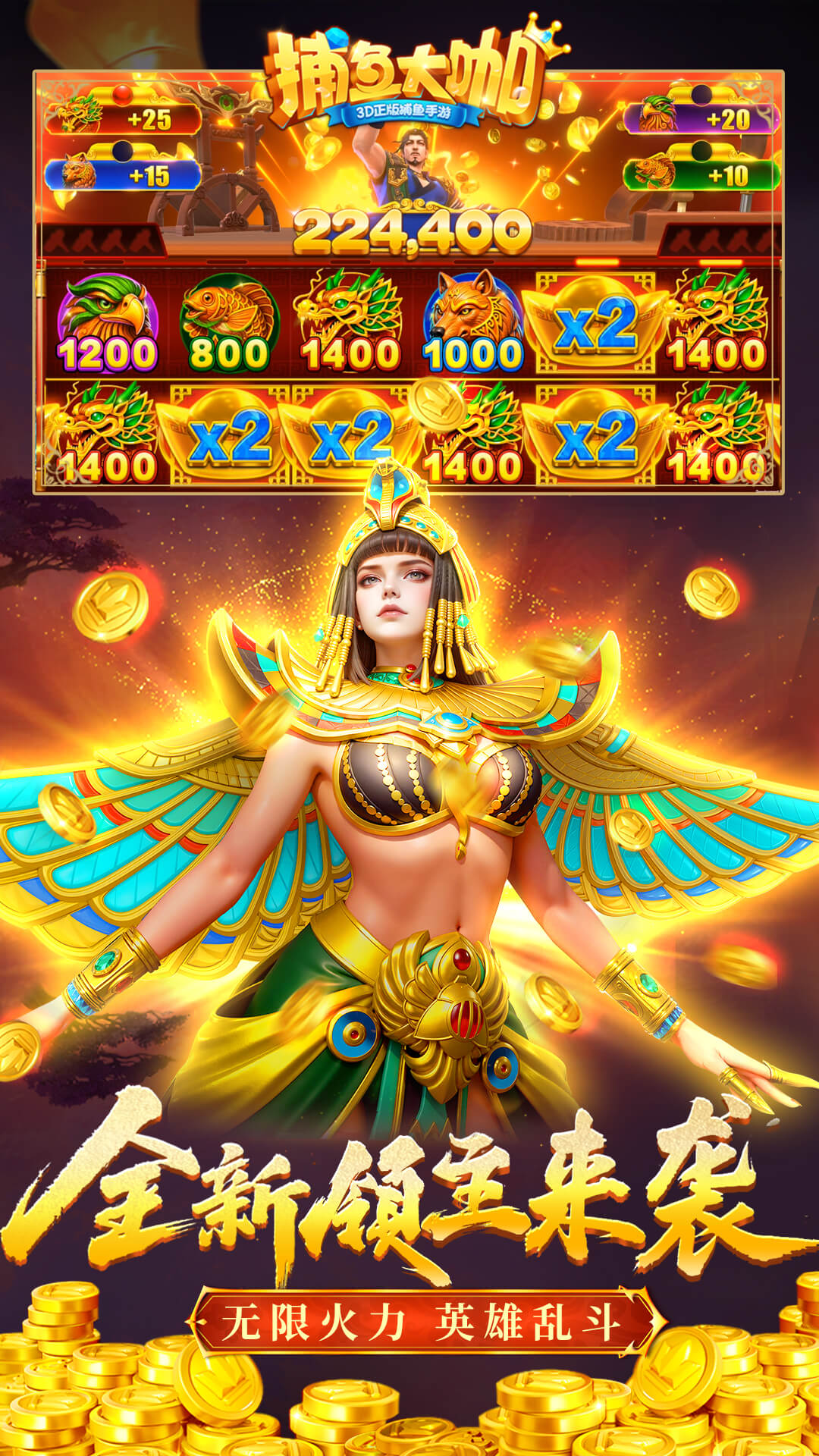 【免费礼包】兑换码:DK999,DK777,DK666<br>【兑换方式】打开游戏-右上角精彩活动-兑换码-每个玩家限2次不同号码的兑换机会<br><br>专业团队,史诗巨制,《捕鱼大咖》全新来袭!<br><br>亲爱的捕鱼玩家们,欢迎来到《捕鱼大咖》!在这里您将置身海底世界,感受真实逼真的渔场、丰富多彩的鱼种、刺激的深海冒险,体验捕鱼乐趣!快来畅享万炮齐发满屏爆金的捕鱼盛宴吧!<br><br>【3D画面,震撼场景】<br>3D真实的次时代画面表现,专业团队倾力打造,不仅仅是捕鱼,而是置身其中,身临其境!<br>【远古神兽,震撼出场】<br>婀娜多姿的人鱼公主,守护宝藏的远古巨龙,海洋深处的泰坦巨猿,载满财宝的幽灵宝船,探索伟大的航路,还有更多神秘鱼种等你来一起发现!<br>【尊贵特权,免费享受】<br>升级就送VIP,尊贵特权免费享受,真正的不花钱玩到爽,不花钱爽到翻!<br>【超多福利,倾情放送】<br>登录就送海量金币,3日好礼、鸿运抽奖、深海寻宝,多重福利领不停!<br>【超炫炮台,绚丽翅膀】<br>劲爽炫酷炮台和华丽绚烂翅膀,让您在海底的捕鱼世界也能炫出个性,惊艳四座!<br>【原味街机,五十万炮】<br>还原经典街机的捕鱼玩法,轻松直升50万炮,一炮亿金爽翻天!<br>更多精彩,尽在《捕鱼大咖》!<br>【特别声明】<br>本游戏致力于为成年人(18+)提供良好的游戏体验,游戏内不涉及任何赌博、现金交易和兑换实体奖品内容,在游戏内获得成功的体验,不代表现实生活中的成功。<br><br>本游戏不涉及赌博,故玩家无任何机会赢取现金或实体奖品。