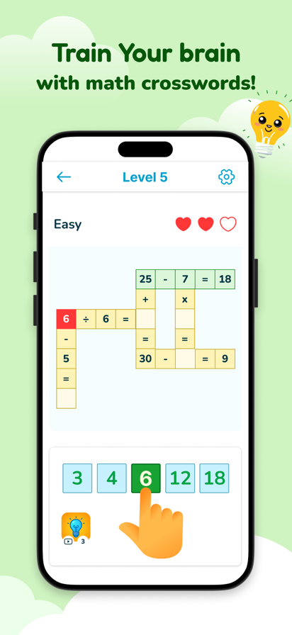 数学填字谜题 – 交叉算式与数字谜题游戏! 用数学填字谜题挑战你的大脑,这是一款将经典填字逻辑与有趣算术挑战相结合的交叉算式(Cross Math)游戏。喜欢逻辑游戏、数字谜题和心算训练?这就是为你准备的完美选择! 玩法特色: - 交叉算式:每个“填字线索”都是一道算式,解等式而不是填单词 - 趣味数学游戏:在闯关中提升心算、推理与问题解决能力 - 数字填格:将正确的数字填入网格,完成整张谜题 - 多样逻辑挑战:从新手到数学大师,多种难度任你选 - 填字逻辑:同时运用数字与逻辑,破解更具挑战的关卡 - 提示助力:卡关不怕,提示功能帮你继续前进 - 清爽设计:友好界面,让各年龄段都能轻松上手 适合人群: - 数学爱好者与谜题控 - 喜欢逻辑谜题、交叉算式与数字游戏的玩家 - 希望通过日常训练成为“数学大师”的你 立即下载《数学填字谜题》,开启你的数学大师之旅!无尽的交叉算式与数字谜题等你来战,全面考验你的逻辑与算术实力!