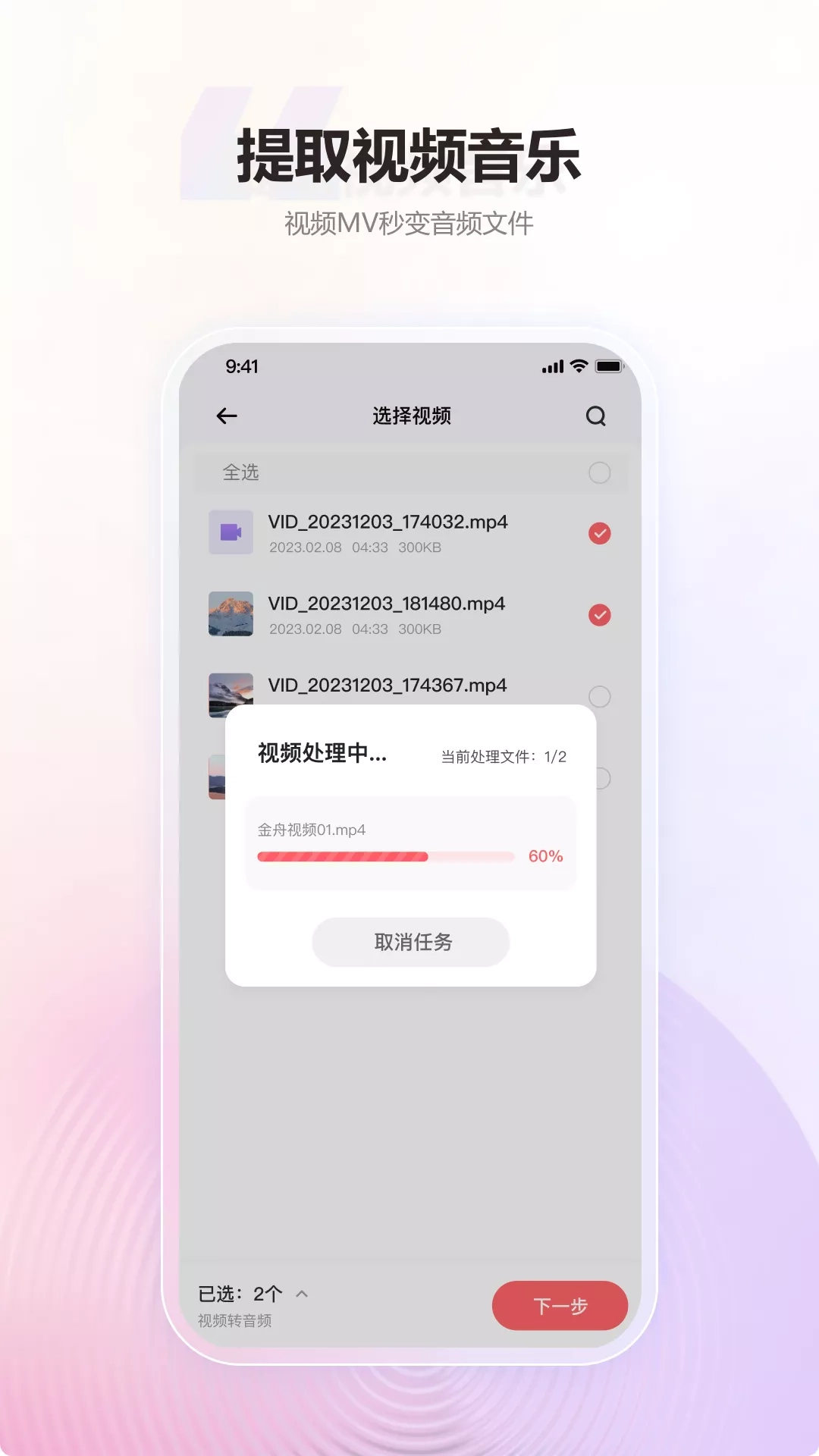 应用简介: 金舟MP3转换器是一款支持音频格式转换、视频转音频、音频合并、手机铃声制作、混音等功能的音频处理软件,支持mp3/aac/m4a/wma/wav/flac等主流音频格式,操作便捷。 特色功能 【格式转换】支持多种音频格式转换,包括mp3/aac/m4a/wma/wav/flac等。 【音频合并】轻松实现多音频合并,对音频文件拼接剪辑,合成出想要的音乐文件。 【视频转音频】可以从各类短视频中提取mp3或者其他格式的音频,将视频MV秒变音频文件。 【音频混合】将多个音频混合成一个音频,调节背景音乐和主旋律的音量,制作专业的音频混合剪辑。 注意事项: 1.使用前可先查看使用教程,了解产品使用方法; 2.兼容系统:Android 6.0以上; 3.使用前请授权必要的操作权限。 问题反馈: 软件使用过程中遇到任何问题,亦或者对我们产品有任何的意见或建议,可联系我们的在线客服,我们将为您解答,研发团队将持续迭代优化产品,奉献给用户体验更佳的产品。 用户QQ交流群:638908614