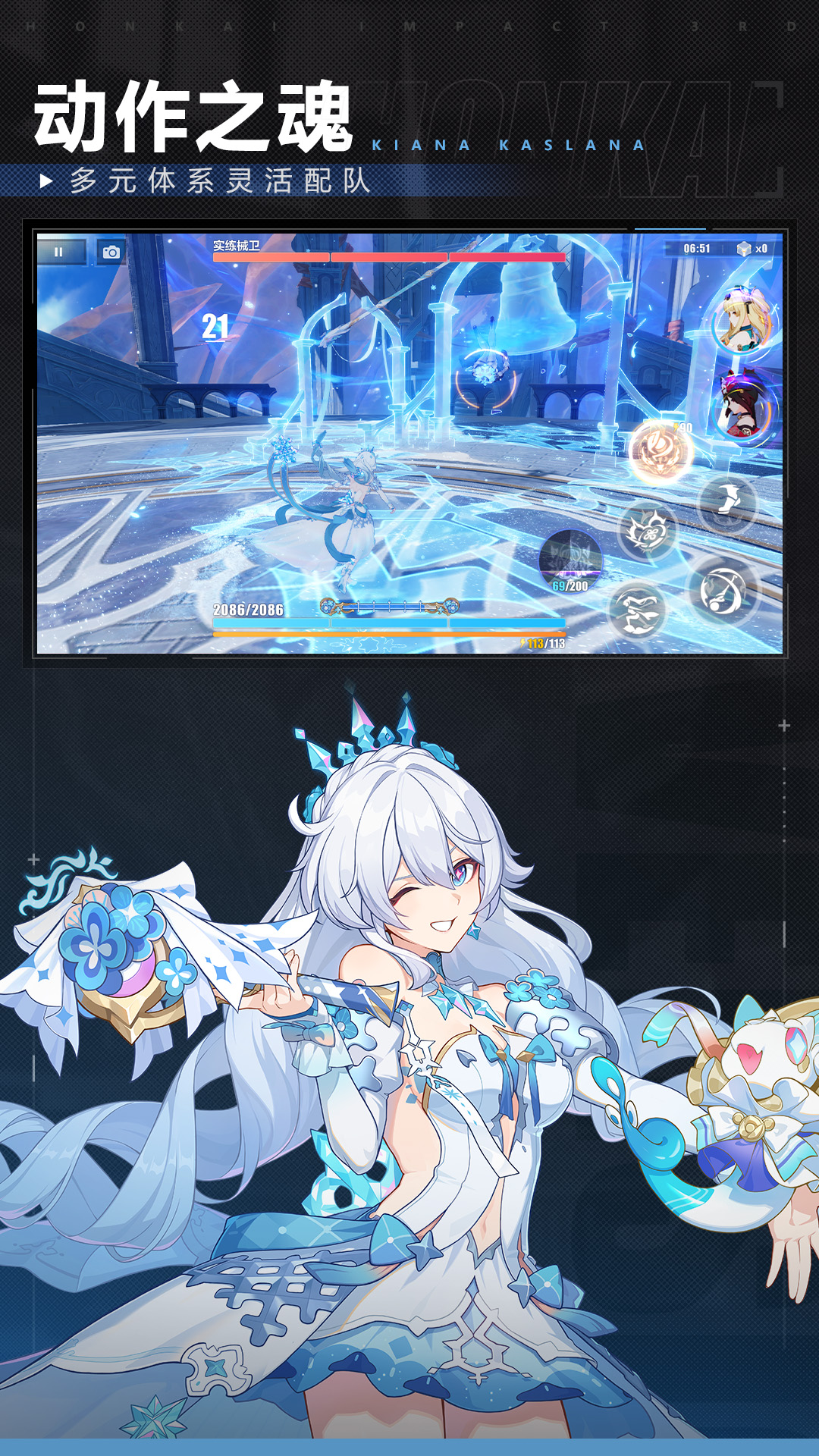 《崩坏3》是米哈游自研的一款科幻冒险动作游戏。 3D全视角卡通渲染、自由跳跃的立体战斗,无限可能的分支连招,酣畅淋漓的超强打击感……打造次世代动作游戏! 扣人心弦的崩坏系列故事、沉浸感十足的关卡剧情、豪华的声优阵容,更会让你感受到前所未有的代入感。 地球上的危机暂且告一段落,而火星上的新冒险已经拉开帷幕。 邂逅性格迥异的女武神,一起探索火星文明的秘密。 休伯利安号指挥系统已准备就绪,正在处理登录请求…校验完毕! 全舰听令,防护栓解锁,下载引擎开始输送高浓度能量,登录倒计时10,9,8… 「Captain on the bridge.」 从今天起,你就是我们的舰长了。 请和我们一起,为世界上所有的美好而战吧! ------------ 崩坏的阴影之下,文明危机重重;少女们挺身而出,为守护世界勇敢奋战。但这个「世界」,比想象之中还要广阔许多、许多...... 【多线交汇,新老伙伴携手冒险】 琪亚娜陷入沉睡后,来自不同星球的朋友们怀揣着不同的目标,聚集在一起,探寻火星的秘密。 【动作之魂!多元体系灵活配队】 更丰富的队伍搭配,多元化的战斗思路,为操作带来更多样的可能性。协同出击,一起为美好而战吧! 【今日休假~ 日常减负轻松体验】 今天想像德丽莎一样给自己放个假?使用「吼吼休假券」快速完成任务,领取奖励吧! 【场景焕新,全新地图沉浸体验】 对光影、材质等细节持续打磨,带来动画电影般鲜活的美感;全新的场景将陆续开放,自由探索、感受沉浸式的剧情演出,感受次世代品质画面的魅力吧! 【重磅福利,原画集活动正式开启】 九周年福利上线,参与周年活动即有机会获取原画集Vol.4《寄往群星的梦》!登录累计赠送55抽,更有S级律者角色、神之键自选箱等福利等你来领取
