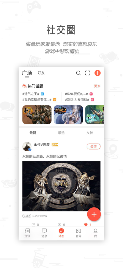 巨人网络旗下官方App 征途大神社区 是为征途系列端游而生的游戏利器,集社交、智能攻略、游戏数据为一体的官方社区平台。汇聚《征途》、《征途2》、《绿色征途》、《征途怀旧版》等全系列征途游戏; 在这里可以关注你感兴趣的,点赞你所认同的,评论各抒己见。同时可以随时随地与游戏中的好友聊天。 形式多样,样样简单。 产品介绍: 【专属资讯攻略】 掌握一手资讯,公告、新闻、八卦趣闻实时了解,更有专属游戏攻略; 随时了解官方活动,维护信息,开服福利即刻通知。 【人气动态】 游戏世界,现实生活; 一句感悟,一段故事,几张图片,爱恨情仇; 发表游戏心得,炫耀极品装备,吸引围观; 尽情表达。 【游戏数据互通】 无论何时身在何处,拿出手机畅快游戏互聊; 开启展示游戏角色后,登录APP即可查看游戏内角色等级、属性等基本信息,迅速掌握游戏动态; 强大的游戏助手,与游戏实时互通。 【便捷登录与安全】 认证手机之后可使用一键扫码和动态码,登录全系列征途端游游戏; 账号管理等安全功能便捷使用。 人在征途,更多精彩,尽在社区。
