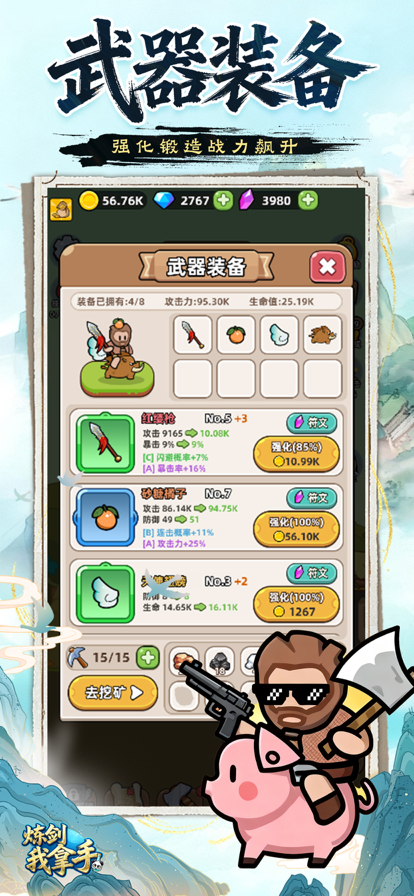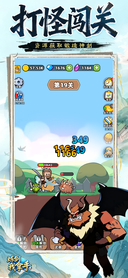 你踏入一场妙趣横生的合成经营冒险!在这充满古韵的世界里,你将化身古代英雄,开启别样人生。武器、宠物、盾牌、帽子等海量装备,皆可由你亲手合成。精心经营,不断尝试合成配方,向着终极武器全力进发。一旦成功炼制出那威力绝伦的神兵,便能仗剑天涯,在江湖中所向披靡,无人能敌。快来解锁属于你的非凡江湖之旅,书写一段热血传奇!