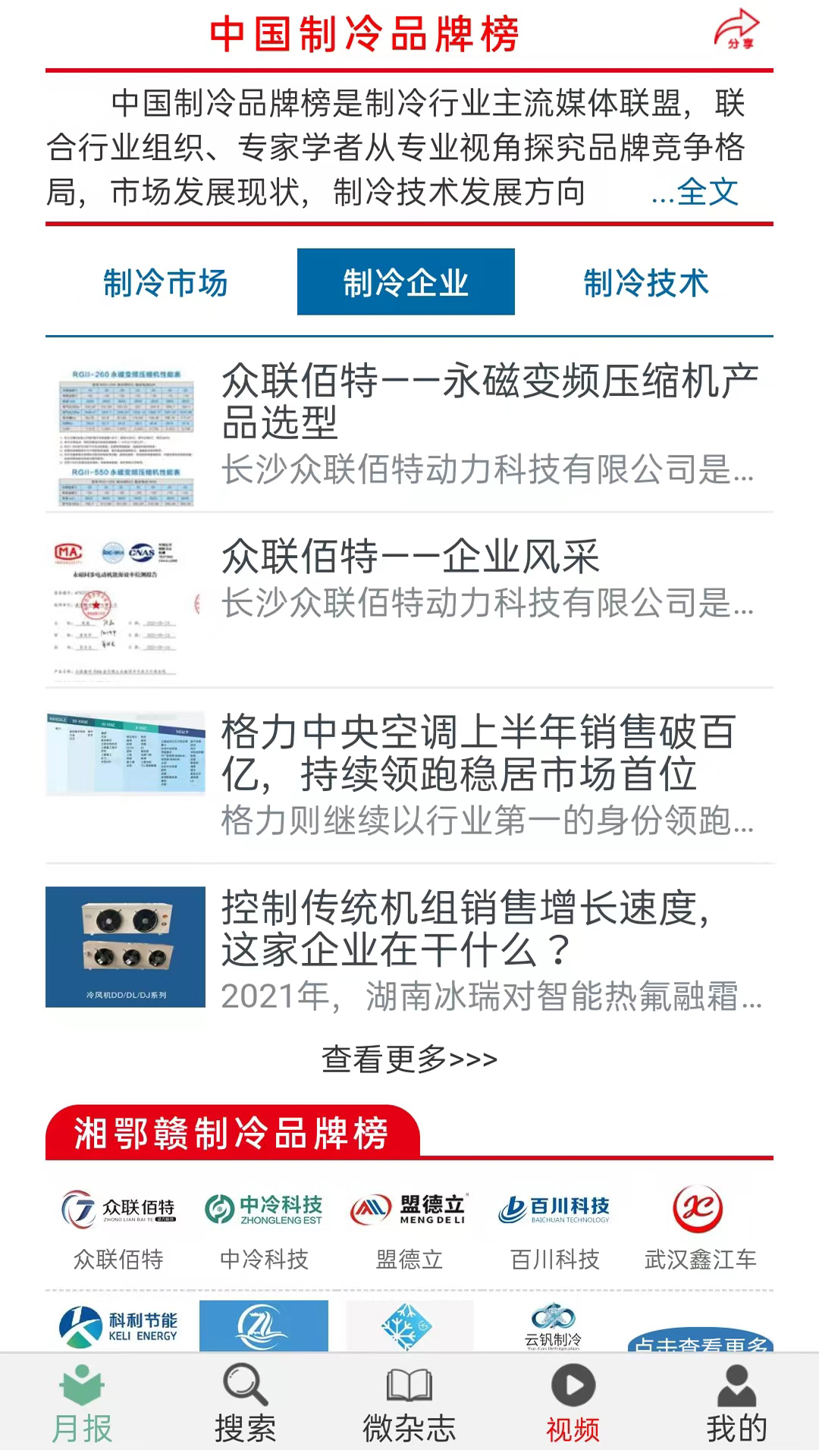 制冷商情APP是制冷行业主流权威新媒体,数据直观、系统、严谨,系统操作表现简单、精准、直观的应用系统。<br> 1) 具备行业媒体内最高的曝光率,让客户在最集中的地方发现所以需的商务信息。<br> 2) 行业内更方便、更快速的信息传播载体,微信分享等多各种知名媒体分享。<br> 3) 方便,直观、准确的从制冷机组、配件电控、两器及容器、压缩机、制冷设备、材料工具、冷库及辅材、空调热泵八大产品分类为入口快速、精准的找到生产商,经销商,工程商及相关行业产品的供应信息。<br> 4) 方便,直观、准确的从华北区、华南区、北区、西区四大地理区域为入口快速、精准的找到生产商,经销商,工程商及相关行业产品的供应信息。<br> 5) App展示的行业信息内容以产品类别关联企业信息,以企业目录关联产品数据,形成环式的以企业连带资讯数据等多关系链接结构的数据信息圈,APP能方便用户从多路径操作查看行业圈内所有价值的商业信息。