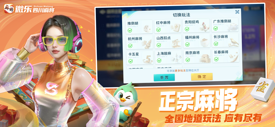 《微乐四川麻将》是一款汇集各地正宗经典麻将玩法的手游,热血排位公平竞技,特色爆火娱乐玩法,刺激翻倍!赛季福利不断,凭实力获得权威麻将考级认证,畅享麻将竞技比拼的魅力!更有个性化职业角色增添牌桌养成乐趣,「乡村爱情故事」联动狂欢不停! 游戏特色: 【正宗玩法,应有尽有】 血战到底、红中麻将、杭州麻将、贵阳捉鸡....各地正宗地方玩法合集,款款地道等你来! 【爆火娱乐,刺激翻倍】 多种创新娱乐玩法,花语红颜、花语乾坤、红中血流爆爽胡牌,番上加番! 【赛季排位,竞技比拼】 赛季排位争霸,热血竞技公平比拼,更有海量福利上线即得,欢迎各路雀神来秀牌技! 【麻将考级,权威认证】 实战即得「IMSA国际麻将联盟认证证书」,证书编码全球可查,有实力就来战! 【个性角色,随心选择】 元气主播、瑜伽教练、神秘调酒师......全新角色系统闪亮登场,赢牌更有范儿! 【正版联动,乡爱聚川麻】 象牙山棋牌馆开业了!「乡村爱情故事」刘能、广坤等角色空降牌桌,伴老铁你血战到底!