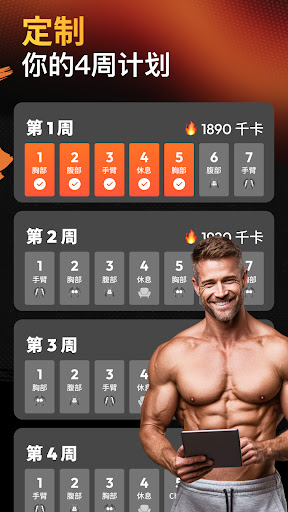 适合男性<b>在家</b>燃烧脂肪和减肥的最佳应用!通过超高效的脂肪燃烧锻炼,您可以减掉身体脂肪,消除<b>胸部赘肉</b>和腹部赘肉。开始30天训练,每天仅需<b> 5-10分钟</b>即可减肥并保持健康!<br><br>提供<b>低冲击模式</b>,适合超重或有关节问题的人群。无需健身房,<b>无需器材</b>,只需利用自身体重减肥并锻炼肌肉。您可以在图表中<b>追踪消耗的卡路里</b>和减肥进度。<br><br><b> 3个难度级别</b><br>提供3个难度级别的训练,适用于所有人,包括初学者和专业人士。由专业的健身教练设计,专注解决男性麻烦部位,腹部,胸部,帮助您快速减肥并练出腹肌。每天都有不同的锻炼,让您时刻保持新鲜感,轻松坚持下去。<br><br><b>低冲击模式</b><br>低冲击模式的训练温和且高效,可以最大限度地减少对关节的作用力,降低受伤风险。<br><br><b>摆脱胸部赘肉</b><br>因为胸部肥大一次次地拉拽T恤?有针对性的胸部锻炼可以帮助您减掉胸部脂肪,消除尴尬的赘肉。<br><br><b>减掉腹部赘肉</b><br>男性因睾丸激素更容易在腹部储存脂肪。结合最好的腹肌锻炼,您将更快地减掉顽固的腹部脂肪。<br><br><b>自定义训练</b><br>程序内提供有30多个动作,您可以有选择的创建自己的训练计划。如果您的膝盖或背部受伤,完全不必担心,更换不需要的运动即可。您还可以调整锻炼顺序和休息时间。为了达到最佳效果,建议您保持低热量饮食。<br><br><b>特点</b><br> - 3个难度级别,适用于所有人:男性、女性、初学者和专业人士<br> - 低冲击模式<br> - 自定义锻炼计划<br> - 无需器材,无需健身房,自重锻炼<br> - 减肥锻炼,腹肌锻炼、胸部锻炼、腿部锻炼及手臂锻炼<br> - 锻炼提醒,帮助增强自律<br> - 同步锻炼与卡路里数据到Google Fit<br> - 追踪减肥进度和消耗的卡路里<br> - 动画和视频指导<br> - 逐步增加运动强度