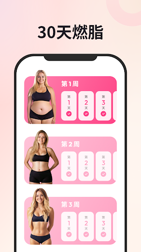 <b>简单有效</b>的居家减肥应用,专为女性设计!快速有效地减肥燃脂,获得理想身材。提供<b>不同难度水平</b>的锻炼,新手老手都适用。根据你的针对部位、身体素质情况和健身需求,量身定制你的私人健身计划,也可为身体受伤人群调整计划。<br><br>无需器械,随时随地即可运动。轻松坚持锻炼,<b>每天只需花4-8分钟</b>,就能看到显著进步。准备好和我们一起踏上减肥之旅了吗?<br><br><br><b>你是否曾被这些问题困扰?</b><br><br><b>- 不知道怎么减肥?</b><br>我们为你准备了科学有效的减肥计划!根据你的减肥目标、身体状态和锻炼水平量身打造。无论是新手还是老手,总有一项计划适合你,你还可以根据需要自由调整锻炼难度。我们配备了3D动画演示、真人健身视频和文字动作描述,帮助你正确掌握健身动作。<br><br><b>- 总是难以坚持减肥?</b><br>如果每天只需要锻炼4-8分钟呢?无需任何器械,随时随地都能锻炼。每天提供不一样的动作计划,让你的减肥旅程不再枯燥。有了我们的锻炼提醒功能,轻松培养日常锻炼习惯。<br><br><b>- 减肥效果不满意?</b><br>这里有专家编排、科学有效的锻炼计划。通过HIIT训练,加速新陈代谢,长期减肥,全天候燃烧脂肪。你也可以着重锻炼烦恼部位或其它特定身体部位。我们有清晰易懂的图表,帮助你记录追踪体重和BMI的显著变化。即时的正向反馈就是减肥的最大动力。<br><br><br><b>更多有趣的功能等待你来探索:</b><br>- 无需器械,随时随地就能锻炼<br>- 4个满足不同需求的高效计划,快速减肥塑形,烦恼部位不再烦恼<br>- 3个难度等级,从新手到老手,每个人都能找到适合自己的锻炼计划<br>- 针对女性的HIIT训练,全天候加速燃烧卡路里<br>- 无需付款<br>- 3D动画演示、视频指导和文字描述帮助你掌握正确的健身动作<br>- 无痛实现自律生活,每天只需4-8分钟,让你轻松坚持<br>- 为身体受伤人群提供低强度锻炼<br>- 通过锻炼提醒,实现你的每日目标<br>- 直观清晰地记录和追踪你的体重变化和卡路里消耗<br><br><b>享受多样的减肥计划</b><br>我们设计了4种有效的计划,包括全身减肥、腹部燃脂、臀部与大腿肌肉紧致、精瘦体型塑造,以满足你的不同需求。根据你的自身需求和身体情况,打造最适合你的锻炼计划。每天都有不一样的运动,为你的锻炼带来不同的乐趣。<br><br>专业教练打造、专家把关、科学编排的健身计划,将锻炼日与休息日穿插安排,让你的减肥塑形事半功倍。<br><br><b>查看详细且形式多样的动作指导</b><br>掌握正确的姿势不仅可以规避锻炼中受伤的风险,还可以最大化你的减肥效果。因此,我们提供动画、视频和文字形式的动作指导,堪比你的私人健身教练。<br><br><b>直观清晰地追踪你的减肥旅程</b><br>设置目标体重,并用图表实时记录你的体重变化,感受自己一天天地接近减肥目标。我们的BMI计算工具会为你提供专业的健康指导。你可以检查自己每天的卡路里消耗情况,深入了解减肥进程。此外,我们关心的不只是你的体重,你还可以记录其它身体数据。