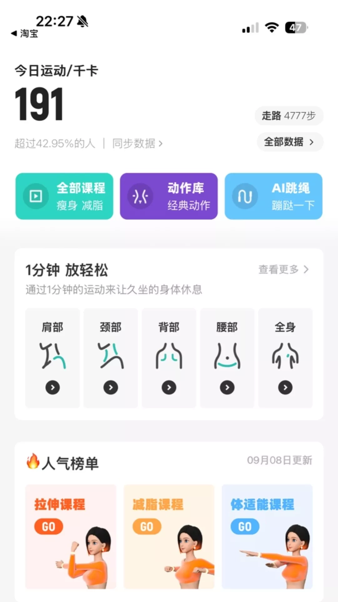 AI运动 AI黑科技体感运动,您的私人运动助手。 无需外部设备,0使用门槛,操作简单,全程智能语音指导,自动精准计数计时。 提供开合跳、仰卧起坐、深蹲、俯卧撑、平板支撑等多种锻炼形式,实时捕捉用户关节运动,纠正运动姿势,保障运动安全。 随时随地,快乐运动。 云动会 AI智能科技,科学锻炼,记录运动数据,全国高校联动,打卡健身计时赛,在家也能随时pk,无时无刻燃烧竞技之魂,体验云上比赛的快感。 计步 简单使用的计步器,自动记录走路里程及消耗热量,实时更新,方便用户全方位掌握了解自己的运动量级。 健身 海量免费健身课程,无论您是健身小白还是腹肌大咖,增肌、减脂、塑形、瑜伽、莱美,总有一款课程适合您,随时随地跟随着屏幕开始锻炼,充分利用碎片时间,是您的专属私人教练。 丰富玩法 早起打卡挑战赛、天天红包赛、运动打卡瓜分现金大礼、运动大富翁,丰富的玩法让您在养成健康生活好习惯的同时,完成任务获得红包! 跑步 精准实用的跑步软件,无论是在室外还是室内跑步机,实时记录跑步轨迹并精确记录跑步里程,并为您提供专属定制的跑步训练机会,解决您的一切需求。 社区 健身网红、减脂达人、健康美食大咖,高质量的精选内容,带您告别运动误区,分享运动心得,结交好友。每日晒图打卡,show出您的运动态度! 减脂营 在线帮助用户变瘦,由专业教练定制饮食、运动计划,在线指导用户执行。