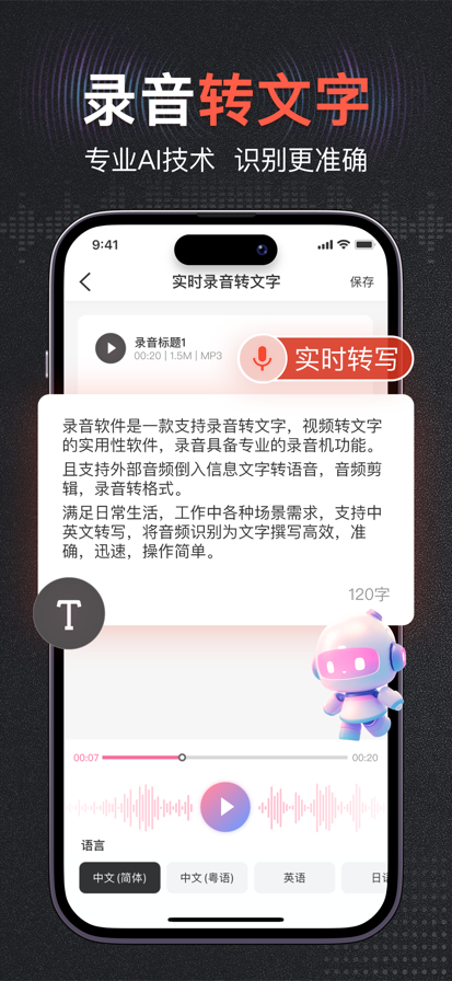 录音王是一款高清音质录音软件,是您在工作和生活中不可获缺的录音助手。 主要功能: 实时录音:高清音质实时录取,还原真实音质,适用于工作会议记录,取证录音等。 录音转文字:准确捕捉音频,高效转换为文字形式。 格式转换:轻松将音频格式转换为wav,mp3,flac等格式。 文字转语音:文字转换为语音,并进行准确播放。 音频处理:包括音频拼接、裁剪、分割等处理功能,更轻松的处理音频。 音视频转文字:准确提取到音频和视频的信息,转换为文字。 语音翻译:音频录入,转换为文字并进行相对应语言的翻译。 会员服务介绍: 会员订阅分为永久订阅和年、季、月、周连续订阅 自动续订到期前24小时,自动在苹果账户扣除续订费用。 如需取消自动续订,请在到期前24小时,在苹果账户设置中关闭自动续订功能。如未在到期前至少24小时关闭订阅,此订阅将会自动续订。 用户协议 https://kdocs.cn/l/ctNeKdwoN9Ih 隐私协议 https://kdocs.cn/l/cl0OdJycY031 会员协议 https://kdocs.cn/l/cf0AQkF3Dsy1