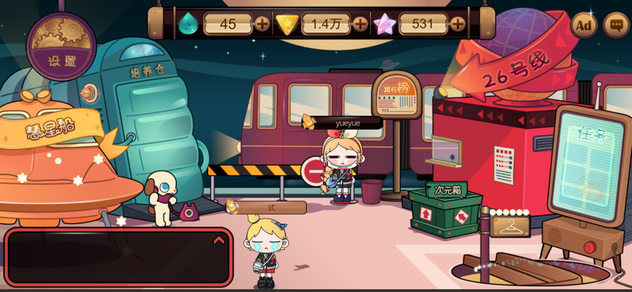 ▲【故事背景】 宇宙爆发奇怪的能量风波,扰乱了太空站的正常运转,太空站台的机器人决定寻找关键人物解决这个大麻烦,通过AI一番搜寻后,确定是地球“小栗子”。机器人启程前往地球,与小栗子一通鸡同鸭讲后,小栗子跟着机器人去到太空开启了星球冒险...... ▲【游戏画面】 1.卡通可爱-动态娃娃形象 2.独有平面设计-场景式UI界面 3.突破常规-球体式造物 4.多元化卡通服饰 ▲【游戏特色】 1.搭乘26号线列车探索独具风格的超级星球 2.触摸蓝色电子屏领取你的任务奖励 3.地上的次元箱装载着所有物品,旁边似乎有很多礼物盒子 4.车站附近的站牌记录着各种榜单 5.培养舱只是通往地下室的通道 6.数一数勋章架上获得了几枚金色徽章 7.炼金室的老式缝纫机达到了新高度 8.听说那台绿色机器可以不劳而获 9.签到打卡机,每日准点送递小礼物 10.试衣间拥有很多可爱的服饰和千奇百怪的主题服饰 11.转换楼梯方向快速去到试衣间和炼金室 12.电话响起,隔壁家的娃娃找到了你 13.缺点什么就去慧星船吧 【联系我们】 官方网站:www.youjgame.com 官方客服:[QQ] 1042850022