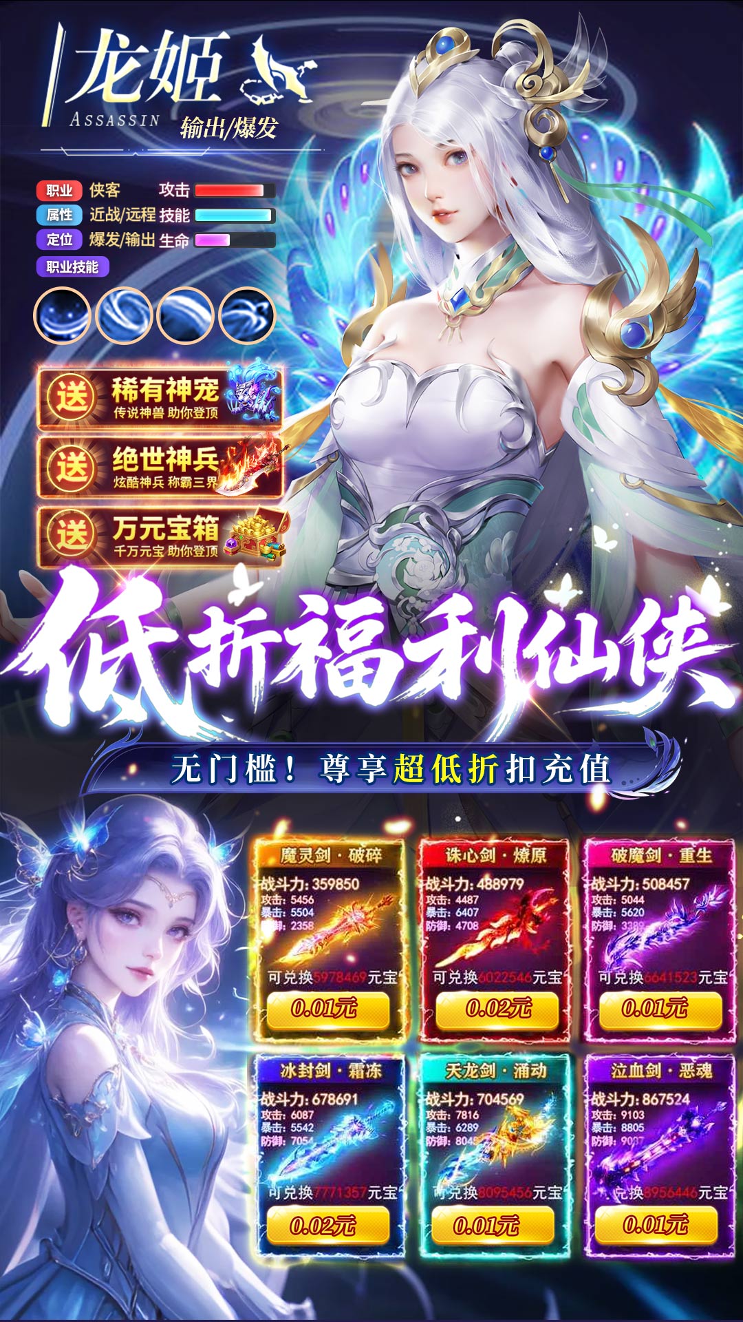 《弑神斩仙》是一款是一款多人在线,融合东方元素的3DARPG竖版仙侠修仙手游。新增射箭小游戏玩法,赢取丰厚奖品,休闲小游戏解压又好玩,助力快乐修仙!此外游戏倾心设置离线挂机,公平交易等系统,更有惊喜福利在游戏里等着你!登录送极品光武,平民玩家再也不用愁!<br><br>游戏特色:<br>【高爆福利】<br>海量元宝免费送:登录就送百万元宝,连抽必中SSSR级神武<br>登录豪礼领不断:至尊vip、极品神武、晴空云翼、稀有法衣...<br>首充福利多如山:不仅有仙玉零元购,更有百倍返利,还送炫酷光武、极品圣羽、极品法衣、稀有神宠、仙兽神石...<br>【传统与创新结合的多样化玩法】<br>不仅有多元竞技多人多人副本,PVP和PVE自由转换,组队仙盟跨服PK等传统仙侠角色扮演游戏的经典玩法;还增加了射箭、爬塔休闲式的玩法,通关小游戏不仅可以提升战力,还获取隐藏福利。<br>【情缘专属甜蜜社交】<br>可结婚可生娃,比武招亲、八字合婚、浪漫婚礼、花轿巡游、刺激抢亲、修仙情缘副本应有尽有!独有仙缘系统,仙剑奇缘,再现仙侠缠绵爱情。