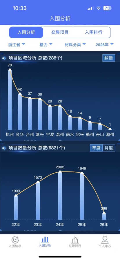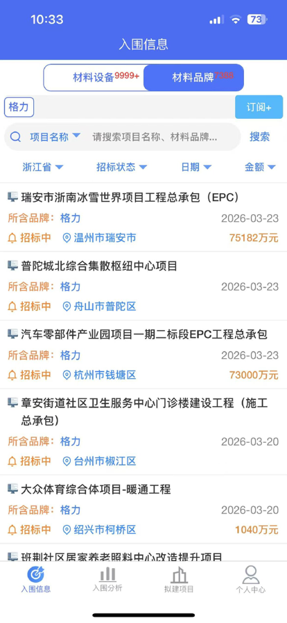 行行入围信息主要服务建材与设备供应商,核心是按品牌查看对应入围项目,并浏览项目详情、清单、图片与附件。另提供入围分析、拟建项目等,结合定位推荐地区信息。个人中心支持会员与订阅、关注与账号管理。部分功能需登录或会员,以应用内为准。