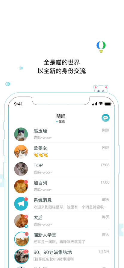 欢迎来到喵星人的世界,在这里每个人都化身为一只喵,也仅仅是一只喵。 这个世界里, 没有花式的约约约, 没有“无意”的自拍晒脸, 没有多样的软文广告, 甚至没有你自己的名字头像, 喵星人并不需要这些; 疲惫了,能有人放松减压, 伤心了,能有人倾听安慰, 开心了,能有人说笑分享, 孤独了,能有人谈天陪伴, 如此足矣。 准备踏足喵星的地球人,请抛弃一切其它社交软件的习惯。 如果你只是为了找个异性聊天暧昧、目的明确地来找个男女朋友、满怀好奇地想要看脸看自拍,那么这里并不能满足你。 世界那么大,让我遇见你, 每一个在生命里出现的人,都有原因,都有使命。 此时此刻就是我与你分享心情, 也许下一刻你就会消失,不必强求,缘分使然。 终究,我们只是彼此的过客, 而那些留下的,才是最美好的。 【匿名树洞】 你的心情、情绪与秘密,随时随地安心倾诉 【趣味匹配】 各式各样的匹配玩法,给你更多小惊喜 【话题喵窝】 打造属于你的兴趣小窝,找到兴趣相投的朋友 【精彩发现】 在发现页找到各种各样的喵,随时开启聊天互动,不再无聊 使用时请一定记住《随喵第一守则》:不问性别,只为聊天。 违背该守则将会造成喵星能量动荡,导致你被喵星永久驱逐哦 如果你对随喵有任何的意见或建议,欢迎联系我们: -Email:rancat@rancat.im -官方微博:随喵App -微信公众号:随喵(suimengwangluo) 【关于连续包月VIP】 · 付款:连续包月VIP为15元/月,每1个月自动续订,付款后记入iTunes账户; · 自动续费:苹果iTunes账户会在到期前24小时内扣费,扣费成功后将延长一个月的VIP有效时间; · 取消自动续订:请至少提前24小时,至您的 Apple ID 个人帐户内,关闭“随喵VIP”的自动续订功能。 隐私政策:http://rs.rancat.im/rsc/privacy.html 服务条款:http://rs.rancat.im/rsc/termsofservice.html