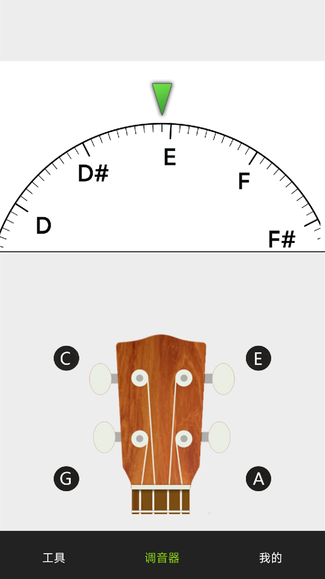 尤克里里校音软件,可调古典吉他、民谣吉他、尤克里里。使用方便。<br><br>使用方法:<br>- 将手机靠近吉他,依次弹拨各个弦来测各弦音。<br>- 首先看测得音高,在音高正确的情况下看指针:指针偏左,则表示音偏低,应将该弦拧紧;指针偏右,则弦偏高,应拧松。<br>- 点击底部按钮可以听各弦示范音。<br><br>注意事项:<br>- 软件使用时需要通过麦克风实时采集声音,如果您的系统提示“是否给予麦克风录音权限”时,请允许。否则无法调音。<br>- 由于安卓机种类繁多,不可能所有机型都完美支持。有些手机的双麦克风降噪功能会影响调音,可以尝试使用线控耳机的麦克风。 <br> <br>感谢您的使用,希望会给您带来方便。