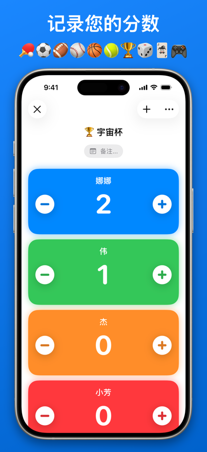 功能 • 记录您的游戏和体育比赛的分数。 • 保存已完成游戏的历史记录。 • 支持 iCloud。可在所有设备上同步分数。 • 出色的 VoiceOver 支持。 • 无广告。 自定义 • 命名您的游戏。 • 编辑玩家的名字和颜色。 • 为每个玩家设置起始分数和增量。 Skoro+ • 无限游戏和玩家。 • 骰子。 • 为游戏添加备注。 使用条款: https://www.apple.com/legal/internet-services/itunes/dev/stdeula/