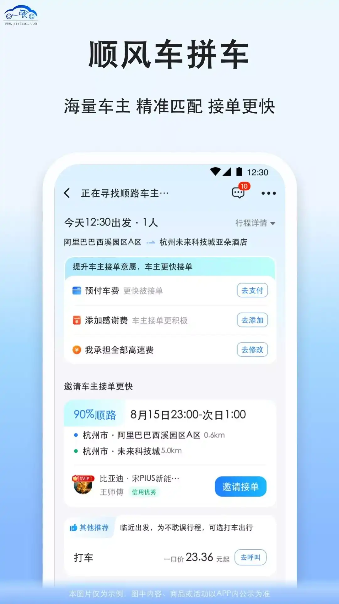 中国四大顺风车平台之一 2014年成立,1亿7千万用户 更安全、更好用 的顺风车 【拼车】一喂顺风车,更安全更好用的顺风车 【顺风车】发布顺路信息,系统自动匹配…每天数十万条实时拼车信息 【拼车网】车主发布信息,在线抢单 【拼车软件】乘客发布信息,在线购票 【打车软件】分城市计价,分远近计价,越远越省钱 【顺风车】订单已成交,对方放鸽子?那就赔钱吧 【打车】行程短信通知、应用内通知,让你出行无忧 【顺风车】不同于滴滴的网约车,建议提前1-5天发布行程 【专车】每天有数十万条全国各地的实时拼车信息 【打车】发布、抢单、购票,随你选 【出行】希望让出行更加便宜和便利 【专车】希望让天更蓝,水更清