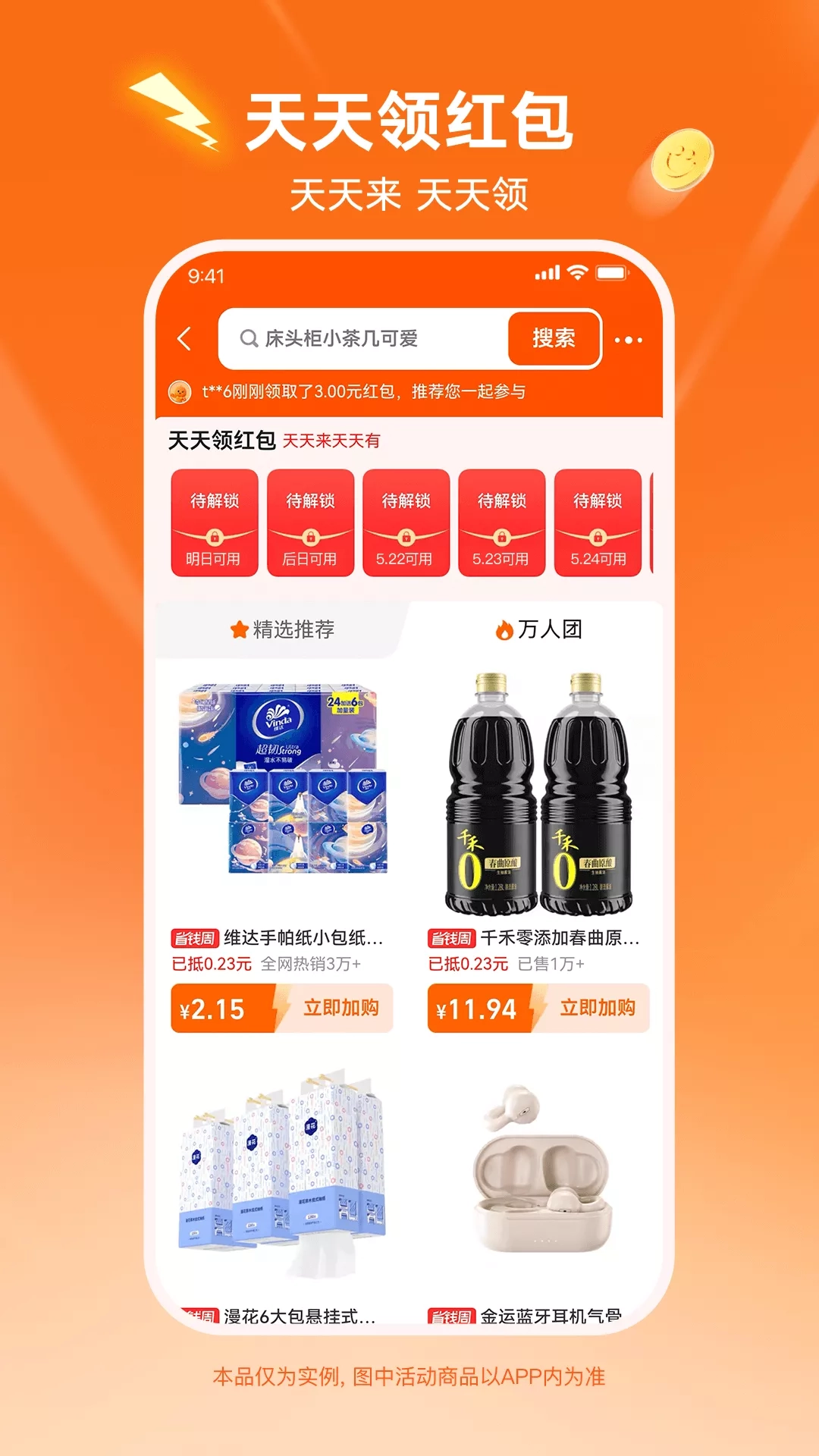 源头直供,好便宜! 淘特,超3亿人都在用的购物App,旨在为消费者带来低价优质的源头好货。同时,官方为消费者保障权益,带来坏单包赔、极速退款、晚发赔付等服务,为消费者提供买得实惠、用得放心、过得体面的购物体验。 【特别低价 | 源头直供好货】 认准”品牌正品“,官方甄选 ,正品保障 认准”产地直供“,坏单包赔 ,新鲜保障 认准”源厂优选“,爆款直销 ,品质保障 【特别新鲜丨“淘菜菜”生鲜次日达】 源头直达:经验丰富的买手,精选生鲜好货,吃着放心买着省心 次日自提:每天22点前下单,次日家门口自提点取货,方便 品类齐全:买蔬菜,买水果,买肉禽蛋,买酒水乳饮,买休闲零食,一日三餐生活所需一站式购齐 【特别靠谱 | 官方保障权益】 坏果包赔:收到水果损坏,签约商家承诺及时处理,若承诺未履约则赔付红包 破损包赔:收到洗护产品破损漏液,签约商家承诺及时处理,若承诺未履约则赔付红包 极速退款:付款后1小时内商家未发货申请退款极速到账,6小时后签约商家未发货申请退款极速到账 晚发赔付:超过48小时发货即得赔付红包