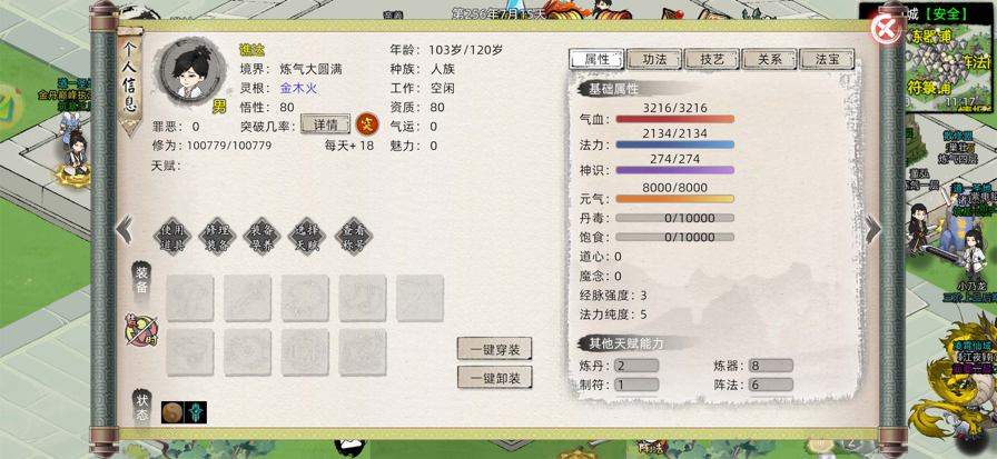 【简介】 玩家扮演一位家族老祖,开创一个家族,然后在大陆或者海域中,占领一个修仙灵山或小岛,带领家族逐渐壮大发展的故事,在壮大过程中你可以攻占其他修真小岛、灵山,探索大陆、深海,秘境探宝等等。 【修仙背景】 修仙背景采用的是凡人流基本设定,修仙境界分为炼气,筑基,紫府(额外新增境界),金丹,元婴,化神,化神以后需要飞升灵界。地理环境采用的是乱星海、天南大陆类似的修仙地图,凡人与修士混住在一座座灵山或灵岛,以家族和宗门为主导的势力管理着领地,玩家需要在这样的环境下合纵连横壮大自己的家族。 【家族血脉】 玩家创建家族时,可以选择一个特有的血脉作为传承,其中玩家自身必然携带这个血脉能力,家族后人中将有机会出现此血脉。血脉的设定类似于凡人中灵界的真灵家族,拥有上古神兽的血脉,还有各种修仙小说里特色的各种各样血脉。 【十八代族谱】 当你创建家族时,需要为你后代排出十八代的辈分,这个辈分都将都由你设定,可深刻体验到家族成长的乐趣 【丰富的人物关系】 每个人都将有父母,道侣,弟子,师尊,宗门,家族,好友等设定,还原修真世界的人情关系和事件(需要持续迭代) 【岛屿争霸】 家族需要占领岛屿,庇护凡人,既要抵挡来此海洋妖兽的威胁,又要抵御险恶的修真世界中各种势力,在这里你需要小心经营自己的家族,学会合纵连横,尽量让自己的家族存在更久,方能找到机会崛起 【修真百艺】 这里有炼器,炼丹,炼符,傀儡,培育灵兽,阵法,种植,采矿等等修真小说中的生活职业,我们将打造更加真实有特色的修仙世界 【真地图随机】 每一次重来,世界地图都将重新生成(选择大陆地图无法重新生成),你家族所在岛屿附近可能就有妖兽老巢,可能就有魔道宗门,还有可能附近拥有珍惜矿脉的灵岛,超多资源的秘境等等,总之每一次的体验绝对不一样