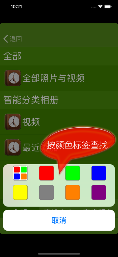 这是一个实用的小工具: 1) 对系统自带的“照片”APP进行扩充,你可以对系统中的照片进行文字标注,或贴上颜色标签,方便以后查找和回忆。 2) 清理iPad/iPhone存储空间,按从大到小的顺序列出视频和照片,方便你决定删除哪个视频,以腾出存储空间。 比如: 1) 整理宝宝可爱的照片,可以标注为"宝宝1岁1个月",以后只要输入"1岁",或"宝宝1岁",或"1岁1个月",就可以找出所有宝宝一岁的照片了。 2) 看照片时,把所有和旅游相关的照片标记为"蓝色",以后就可以选择"蓝色",列出所有关于旅游的照片了。