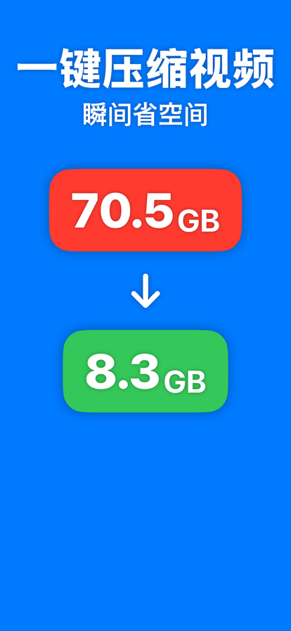 有了这款 app,你可以轻松压缩视频,增加设备的可用存储空间。 您可以比较压缩前后的视频,删除压缩前的视频,保存和分享压缩后的视频。 你可以设置压缩的尺寸和比特率。 你可以在一个屏幕上比较压缩前和压缩后的视频,这样你就可以在删除视频前放心地检查视频质量。 音频也可以关闭。 视频列表中的缩略图会显示文件大小、分辨率、播放时间、文件格式、编解码器和比特率,因此你可以高效地找到想要的视频。 文件格式可转换为 MOV 和 MP4。 编解码器可转换为 H.264 和 HEVC (H.265)。 使用专业版,你还可以使用以下功能 - 按时长、宽度和高度对视频进行排序。 -> 更容易找到较大的视频! - 同时播放压缩前和压缩后的视频 -> 轻松比较视频! 还可以在压缩后的视频中保留压缩前视频的位置、日期和时间以及摄像头信息。