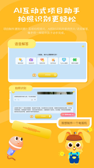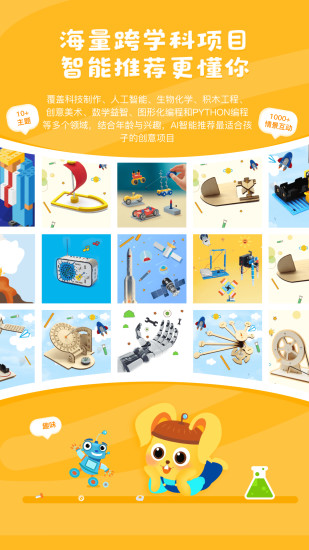 科学小伙伴是一款AI驱动的儿童创作STEAM教育平台,涵盖科技制作、人工智能、生物化学、积木工程、创意美术、数学益智、图形化编程和python编程等跨学科创意项目。支持AI推荐与互动解答、拍照识别、一键购买材料,帮助孩子在实践中掌握数理化知识,边做边学,激发无限创造力。 五大核心功能亮点 1. 海量跨学科项目,智能推荐更懂你 覆盖科技制作、人工智能、生物化学、积木工程、创意美术、数学益智、图形化编程和python编程等多个领域,结合年龄与兴趣,AI智能推荐适合孩子的创意项目。 2. AI互动式项目助手,拍照识别更轻松 项目制作遇到问题?直接拍照提问,AI识别并提供图文/语音解答,像老师一样陪伴孩子动手完成。 3. 材料商城,一键购买材料包满足创作所需 精选项目材料包与工具,一键下单,配送到家,动手创作更高效。 4. AI编程辅导,孩子的专属代码小老师 支持图形化编程与代码学习,遇到难题AI即时解答,引导孩子从“玩中学”,逐步掌握编程与逻辑思维。 5. 实践驱动学习,用编程解决数学与科学问题 将抽象的数学、物理、化学知识融入趣味项目,通过实际操作与编程控制,让知识“活”起来、学得透!
