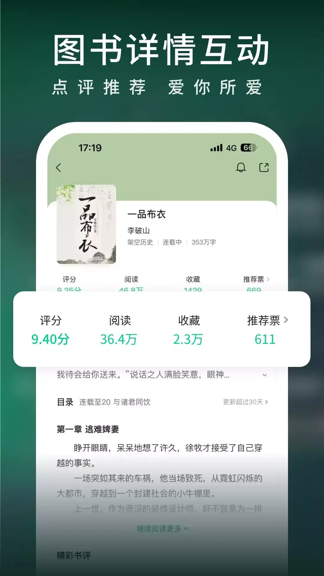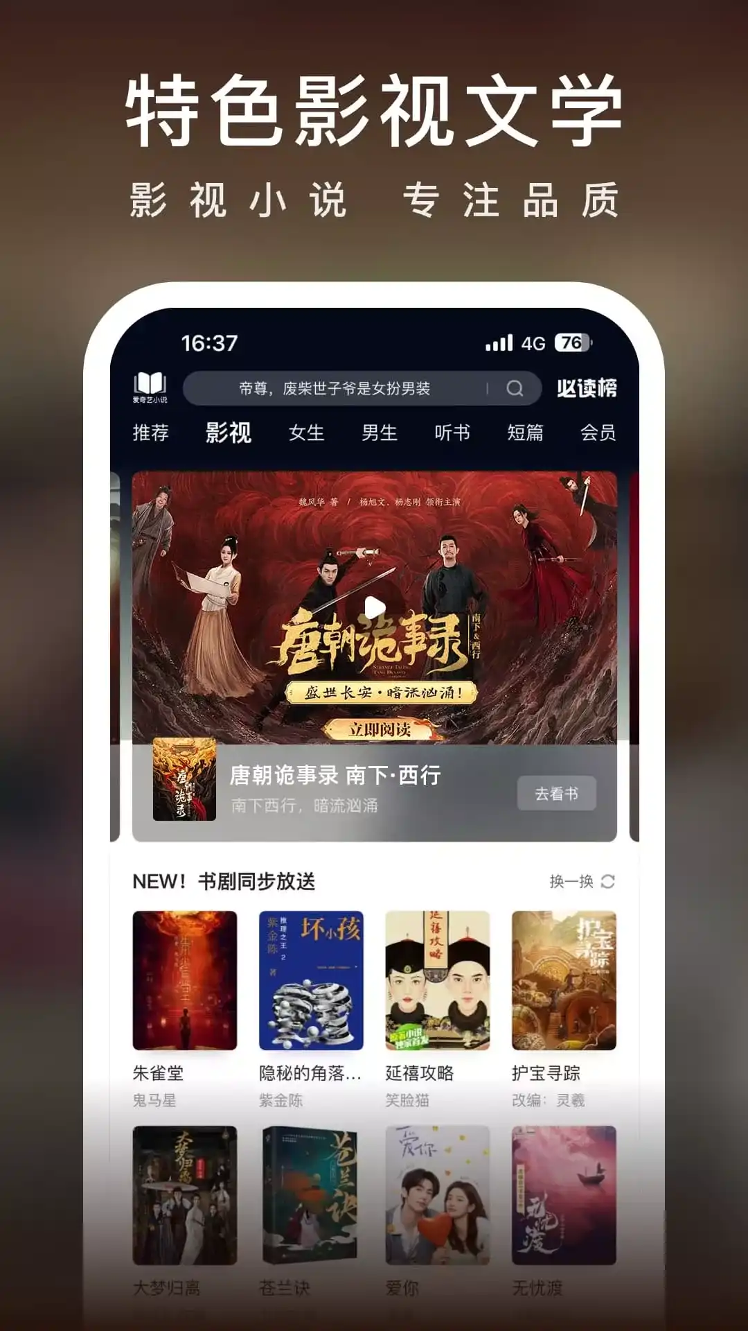 围猎、入青云、与晋长安、锦月如歌、生万物、凡人修仙传、国色芳华、淬火年代长安的荔枝、折腰等经典原著。 草民、便携式桃源、不朽神魔诀、万仙来朝、万剑朝宗、燃烧的蜂鸟.时空追凶1990、血孩子、保护我方族长、龙魂剑圣、何日请长缨、牧神记、深空彼岸等热门网文出版图书。 【热播影视】 《寻秦记》:古天乐、林峯《寻秦记》师徒对决!穿越小说鼻祖!梦回战国,天命归秦,古今对垒,激战一触即发! 《唐朝诡事录》:杨旭文、杨志刚主演《唐朝诡事录之长安》原著,朝堂诡谲莫测,长安风云再起,破八大诡案,揭身世之谜! 《四喜》:童瑶、蒋欣 主演同名电视剧原著,百态人生笑泪交织、家庭烟火治愈人心!平凡中捕捉幸福,一起寻找成长与自由的答案! 《大乔小乔》:赵露思、陈伟霆主演《许我耀眼》原著,表面光鲜的婚姻下隐藏着谎言与操控?一场关于爱与自我的耀眼重生! 【霸榜好书】 《穿越50年代,我的空间每天刷新物资》:穿回红火年代,手握神级空间,一手粮,一手商,搏出惊天逆袭路! 《别人练级我修仙,苟到大乘再出山》:穿越高武世界,手握模拟器,以一人之力布局万族之战! 《去家访:我的二本学生2》:看黄灯5年家访如何改写“不够努力”的偏见,见证无数家庭为教育拼尽全力的托举。 《弃宗而出后,系统竟然升级了》:修为被废、道侣背弃?他携最强传道系统归来!这一世,只为自己传道——我的徒弟,皆是惹不起的存在! 《离婚后,我靠每日情报成首富!》:失业离婚陷入绝境,他觉醒每日情报系统!从各种情报里翻出百万财富,前妻跪求复合?对不起,不熟! 《为什么10倍增长比2倍更容易》颠覆增长逻辑!当当经管新书TOP2,揭示反直觉真相:设定10倍目标反而更易成功!用“少即是多”策略打破内卷。 《独步成仙》:凡人流巅峰之作!别人修仙靠天赋,他靠嗑丹药肝到三界巅峰! 【精彩短剧】 《问灵》《枭途》《我靠真心话横扫职场》《家有齐天》《春雪满江城》《福宝带债主发财了》《待从头》 【产品功能亮点】 -海量书库-超60万册正版图书,百万小时听书 -精彩短剧-热门爆款短剧任意看。 【福利活动中心】 读书会员、影视热门图书,福利送不停! 【新人福利】新用户海量内容免费看~ 【分类齐全】玄幻、奇幻、科幻、言情、仙侠、都市、出版、历史、悬疑推理、青春校园、女生同人等等~