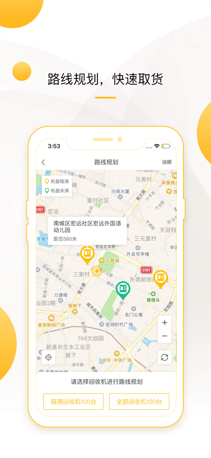 小黄狗回收员APP,让回收员的工作变得轻松简单! 主要功能: 【扫码取货】手机扫码即可登录,方便快捷 【路线规划】一键导航前往回收箱,快速取货 【满箱状态】在线查看回收机状态,轻松掌握 【已收记录】记录工作成果无遗漏,随时可查 【账户中心】账户信息一目了然,安全易用 客服热线:400-677-1666 官方微信服务号:小黄狗智能回收 官方微博:@小黄狗智能回收