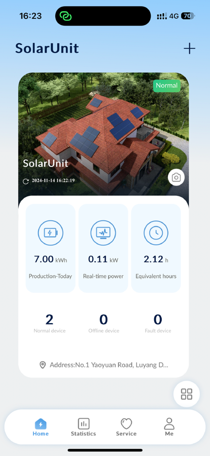 “DAH Solar“ 原名”SolarUnit“,是安徽大恒新能源技术有限公司自主研发的光伏电站管理系统运维工具,用于对电站动态进行全方位、全智能、实时监控和智能分析。该应用程序主要用于终端用户实时监控自己电站的运行状态和运行信息。