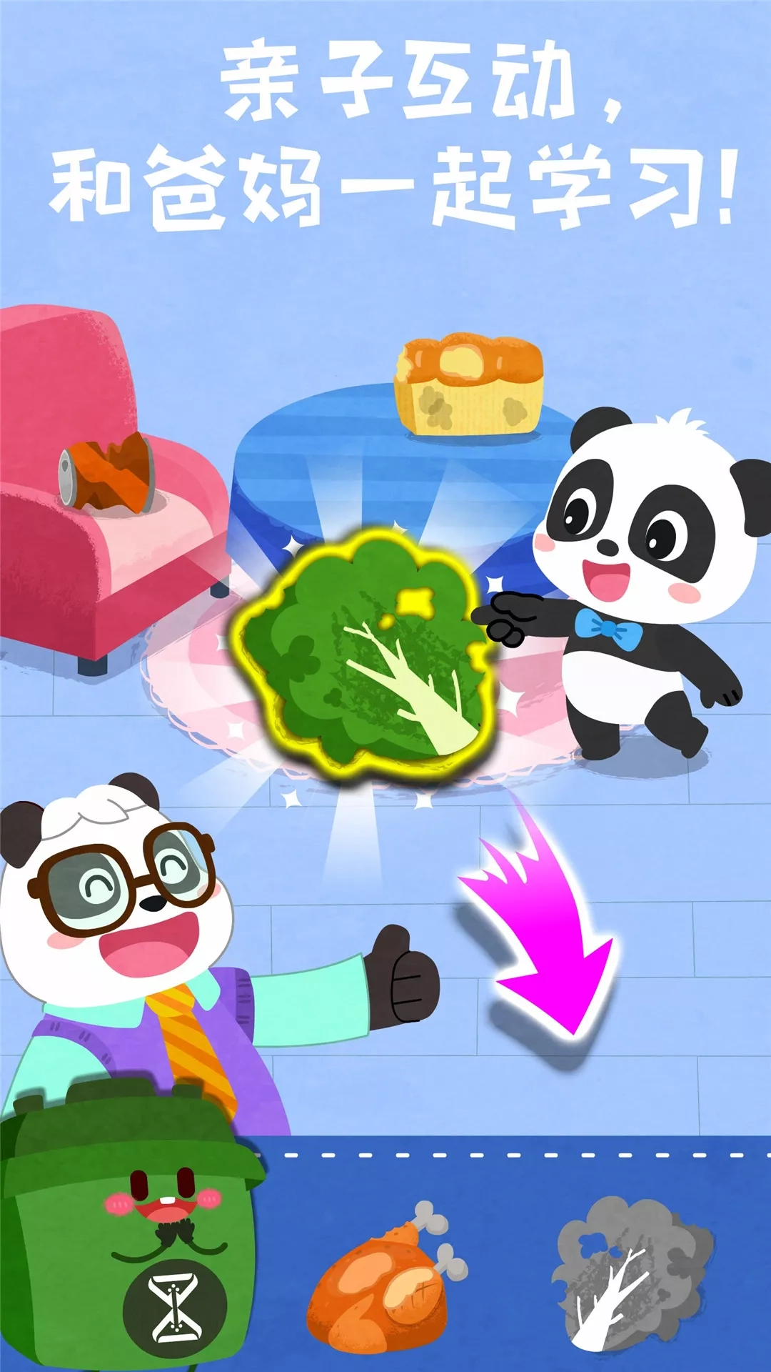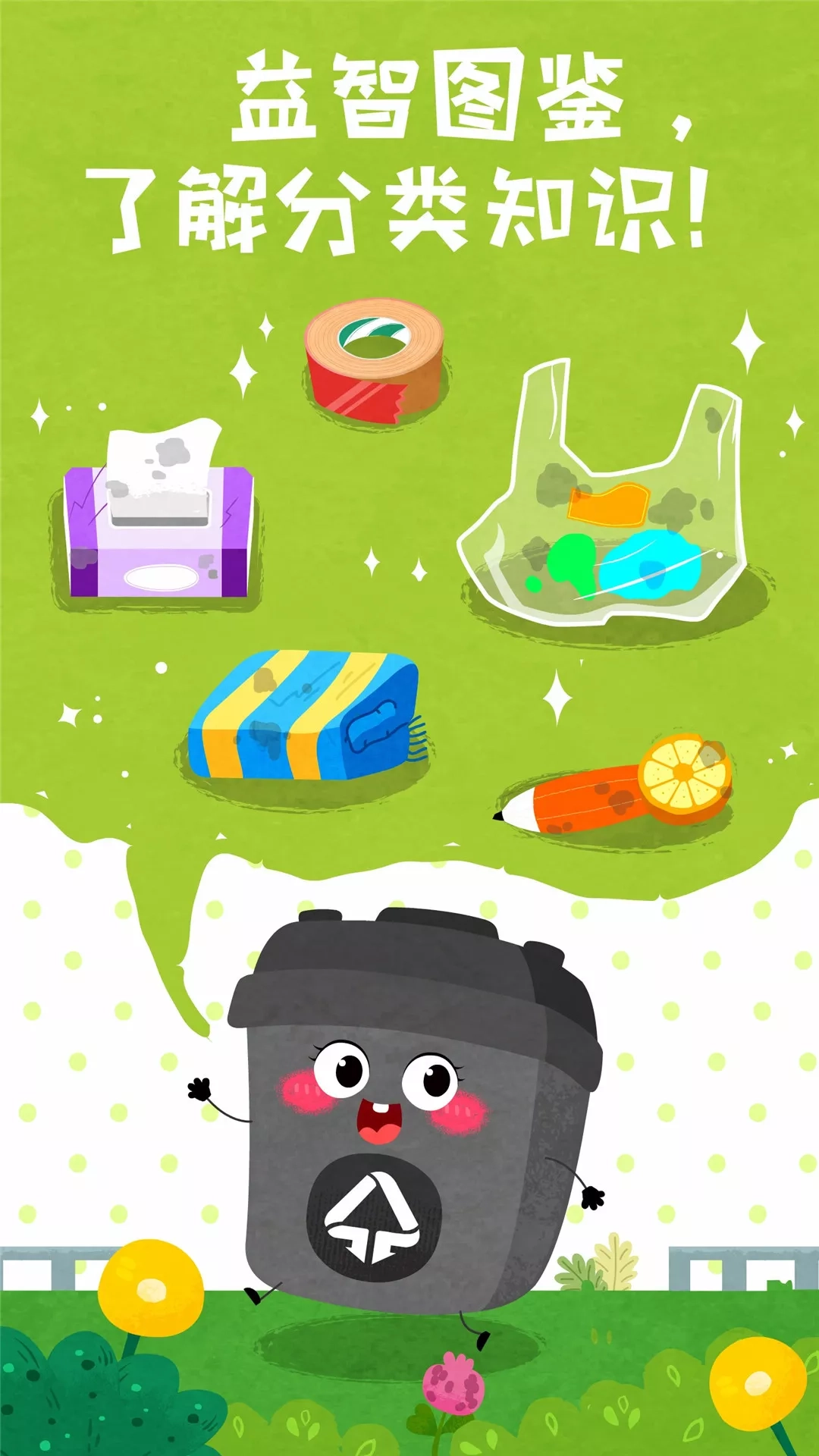 还在为不懂垃圾分类苦恼?儿童版垃圾分类助手——【宝宝垃圾回收】来啦! 从垃圾分类到处理,教宝宝学习分类知识,了解垃圾回收利用,增强环保意识。 宝宝们,快来【宝宝垃圾回收】,学垃圾分类,成为环保达人吧! -学习垃圾分类知识 宝宝来学习垃圾分类知识吧:会污染环境的物品,如电池,是有害垃圾:可回收物是指可二次利用的物品;像苹果核这类易腐烂的物品是厨余垃圾;污染小但不可利用的物品,属于其他垃圾。 -认识垃圾分类标识 再来认识分类标识和颜色!每种垃圾桶都有对应的颜色和标识。黑色的是其他垃圾的垃圾桶,绿色的是厨余垃圾桶;蓝色的是可回收物的垃圾桶,红色的是有害垃圾桶。它们都有自己的独特标识,宝宝记住了吗。 -了解垃圾回收利用流程 垃圾分类后,都去哪里了呢?其实,垃圾分类后会被运到垃圾处理厂,进行回收处理。去厨余垃圾处理厂看看:将垃圾搅碎、脱水、除盐,再加木屑搅拌,垃圾就变成肥料啦。 -将垃圾变废为宝 垃圾也具有利用价值哦。例如,可回收物品中的塑料,能够被制作成塑料玩具。厨余垃圾可以成为肥料。其他垃圾处理、烧制后会变成砖头。有害垃圾,要记得将它交给专业人员处理! 宝宝要认真学习垃圾分类知识,一起保护环境,爱护地球! 宝宝巴士(BabyBus)是专注打造儿童启蒙数字产品的原创品牌,累计服务全球5亿家庭用户。宝宝巴士秉承“快乐启蒙”的理念,用奇妙有趣的方式为儿童提供免费的数字内容,量身定制“好听”(国学故事)、“好看”(儿歌动画)、“好玩”(互动APP)等系列内容产品,让孩子在趣味中认知世界,感受“真、善、美”。 宝宝巴士(BabyBus)是全球5亿家庭用户的选择,陪伴宝宝快乐成长,让宝宝学会独立思考,享受探索世界的乐趣。同时也为家长们提供专业、全面、丰富及个性化的启蒙产品。 【宝宝巴士】儿童启蒙app,获得宝宝巴士世界、宝宝巴士儿歌、宝宝巴士故事、宝宝巴士奇妙屋、宝宝巴士、恐龙王国、宝宝恐龙家园、宝宝梦想小镇、宝宝爱整理、公主化妆舞会、宝宝救援队、宝宝建城市、时尚小公主、奇妙宠物美妆店、宝宝爱水果蔬菜、宝宝动物世界、化妆小公主、宝宝甜品店、奇妙运动日、宝宝魔力画笔、宝宝航海挑战、宝宝幼儿园、奇妙碰碰车、奇妙美味日记、奇妙企鹅部落、奇妙生日派对、奇妙梦幻城堡、奇妙昆虫日记、奇妙的动物家庭、奇妙珠宝店、奇妙地下王国、宝宝家庭日、奇妙怪物美容、宝宝美食派对、奇妙鲜花房、宝宝台风天气、宝宝家园清洁、奇妙思维闯关、宝宝庄园等使用者的一致推荐。 欢迎联系: 微信:宝宝巴士 微博:@宝宝巴士 官网:http://www.babybus.com 邮箱:cn@babybus.com