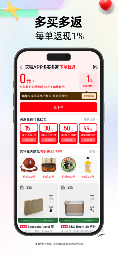 天猫(原手机天猫)是阿里巴巴集团旗下的购物APP。海量官方旗舰店正品保障,为您的品质购物保驾护航。天猫致力于满足消费者对品牌产品和优质商品的购物体验需求。在为消费者提供货真价实的产品的同时,持续创新售前服务并着力提升售后服务,努力打造成线上购物的品质地标,成为越来越多的消费者喜欢并值得信赖的网购平台。 【特色频道】 超神卡:淘宝铂金以上会员专享,每月必免1单!折上再享9.6折!每100元最高再返8元! 猫猫币:天猫下单即返猫猫币,海量商品下单可用猫猫币抵扣,折后再补最高50%,可叠红包叠消费券 多买多返:每单返1%,超神卡用户专享返2% 大牌闪购:爆款低价,整点抢红包 百亿补贴:大牌全网低价,限时买了就返红包 天猫超市:自营商品一次买齐送上门,致力于满足广大消费者全场景生活需求 天猫国际:全球好货新发现,为中国消费者提供全球的进口好物、直达海外生活方式 *具体以商品详情页展示为准 有任何问题和建议,您可以通过以下方式联系我们: 微博:@天猫APP 消费者热线:9510211 手机天猫客户端:我-设置-意见反馈 同样,您给的反馈意见,我们会加速优化改进!