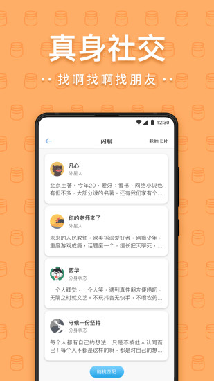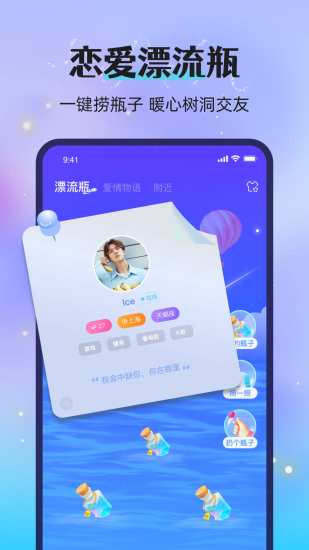 一款以“漂流瓶”为主题的恋爱聊天交友APP,捡起一个漂流瓶一起聊聊他趣,这里有五湖四海的mo陌生朋友陪你一起畅所欲言,一个你的秘密树洞,已有超过数万用户在这里用漂流瓶找到了心仪的cp。 【漂流瓶恋爱】扔个瓶子,写下你的心情,tt装进瓶子投向大海;捡个瓶子,探探陌友的秘密,匿名交友倾诉聊天一起玩。 【语音交友】多人语音连麦交友,通过声音和更多有趣的小伙伴互动,交友就是这么简单。K歌、闲聊、相亲、组CP,美女帅哥云集,更多声控超多主题派对等你加入。还有更多特色玩法等你来探索 【动态社交】无压力记录生活瞬间,陌探他趣味事,让处CP帮你晒给比朋友圈更懂你的人。同城本地附近交友树洞,在线搭伴,找搭子,邂逅附近的陌生人,相遇本该如此美好。