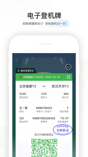 中国国际航空公司是中国唯一的载旗航空公司。 机票预订、办理乘机、航班动态、凤凰知音、机票验真、免费服务预订、自助更改航班服务等简便操作随时随心,贴身服务尽善尽美。 主要功能: 【机票预订】支持300余条国航承运国内、国际航线,155个目的地城市的特价机票查询预定提供语音识别。 【多种支付方式】>提供11家大型银行及支付宝、微信支付等第三方支付平台,支付流程安全快捷。 【办理乘机】好座位,提前选。国内航线在线选座,为您免去了机场柜台排队的烦恼。 【航班动态】航班动态随时掌控,精准查询航班起降时间,支持语音输入,第一时间知晓航班状态变更信息。 【凤凰知音】提供全面的凤凰知音账户管理功能,支持里程明细查询、账单查询、受让人管理和里程补登。 立即下载,体验不一样的旅程。