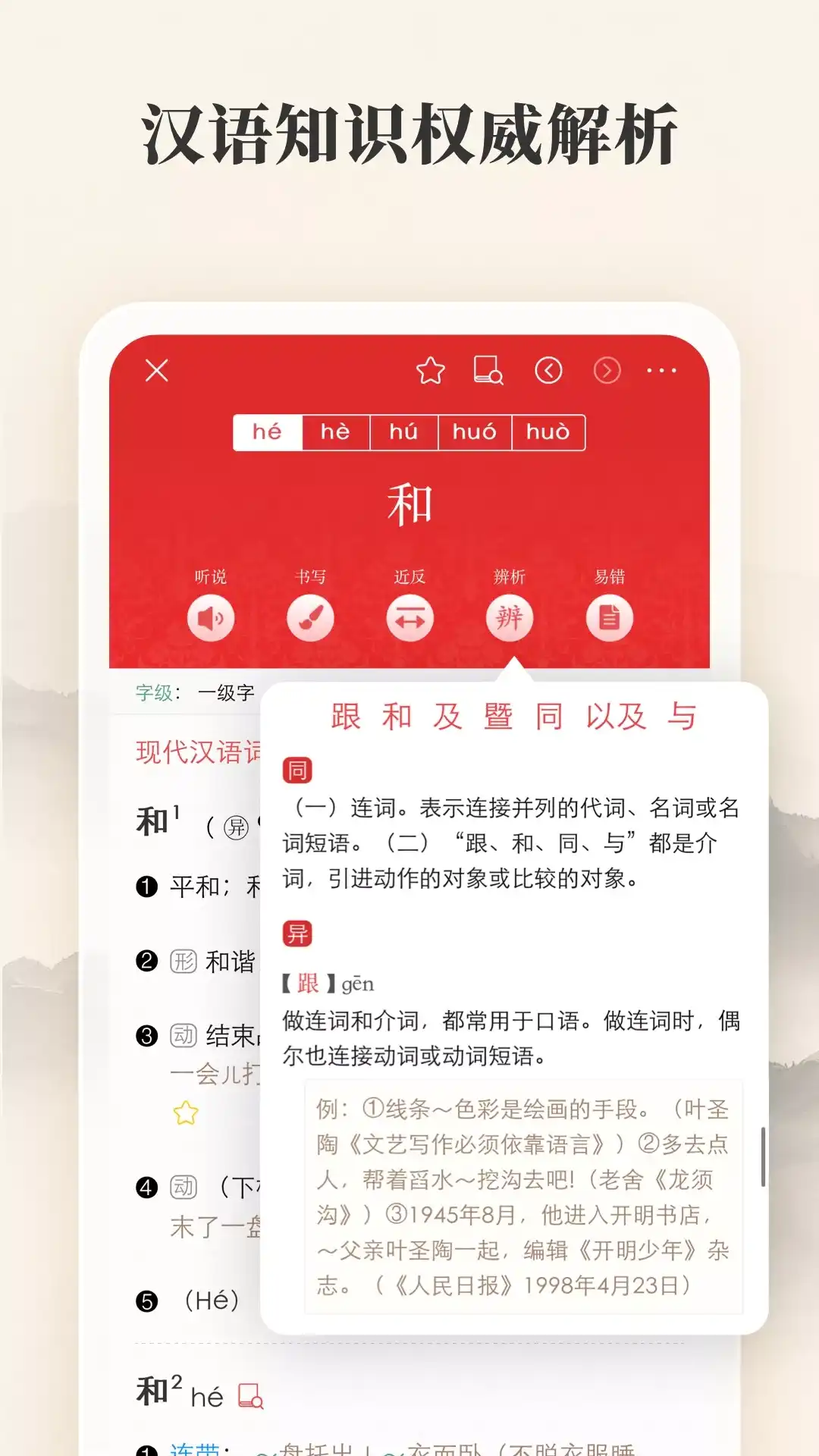 唯一正版《现代汉语词典》App,商务印书馆官方出版,中国社会科学院语言研究所编修。 《现代汉语词典》是新中国成立后编写的规范型语文词典,是现代汉语普通话语音规范、汉字规范和词汇规范的主要参考工具书,被誉为汉语辞书史上的一座丰碑。 ◆权威编撰团队◆ • 按国务院指示编写,中国社会科学院语言研究所主持编纂 • 吕叔湘先生、丁声树先生等著名语言学家奠定学术根基 • 商务印书馆百年辞书出版经验加持 • 先后荣获国家图书奖、中华优秀出版物奖、国家辞书奖等权威奖项 ◆专业语言资源库◆ 【核心内容】完整收录《现代汉语词典》7万余词条 【拓展整合】融入8部专业辞书,覆盖写字规范、组词造句等场景 【发音标准】原央视主播李瑞英录制示范音频,支持跟读互动 【汉字解析】动态笔顺演示+易错字词专项汇编 【文化拓展】收录历代书法字形,溯源汉字演变 ◆多维检索功能◆ 【纸书体验】原版翻阅与关键词检索双模式 【智能搜索】支持语音、拍照、部首拼音等多种查词方式 【专业查询】四角号码检索/手写识别满足特殊需求 【知识关联】自动呈现同音词、近反义词等语义网络 ◆个性化学习工具◆ 【云端收藏】生词本多设备同步,支持自定义分类 【每日学习】定制化推送“每日一词”,配套组词接龙练习 【智能辅助】即时解答笔顺、语法、近义词辨析等问题 自上线以来,《现代汉语词典》App致力于帮助广大汉语学习者准确高效地理解汉语知识与文化,规范运用汉语词汇表达,带给用户全新的词典应用和语言学习体验。 《现代汉语词典》App,为你开启汉语学习之旅的“良师益友”。 【现代汉语词典自动订阅服务说明】 1.订阅服务:涵芬VIP会员连续包月,畅享商务印书馆更多优质辞书及丰富中英文知识服务内容(1个月) 2.订阅价格:连续包月产品为12元/月 3.付款:用户确认购买并付款后计入华为账户 4.华为账户会在到期前24小时内扣费,扣费成功后订阅周期顺延一个订阅周期 5.如需取消订阅,请打开华为手机“设置”-->华为帐号-->付款与账单-->自动续费/免密支付,选择您要解约的续费项目,关闭自动扣费。如未在订阅期结束的至少24小时前关闭订阅,此订阅将会自动续订 6.自动续费协议:https://about.shangdii.cn/autopay_agreement?f=21004 7.隐私协议: https://about.shangdii.cn/privacy?f=21004&chn=zhy