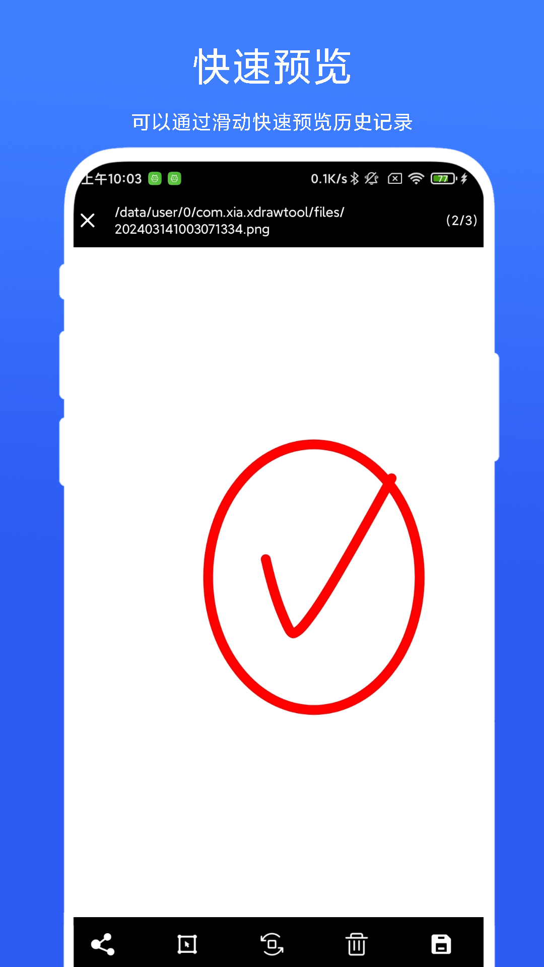 手绘小白板APP,一款可以在手机上任意绘图的APP。类似一个电子小黑板一样,可以自由绘制图案,目前支持:任意线条绘制、直线绘制、箭头绘制、圆形绘制、椭圆绘制,文字插入……另外,软件支持分类功能,已经绘制好的图片可以自由分享和编辑。