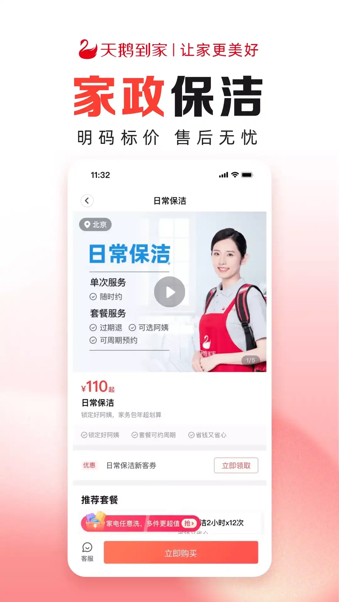 天鹅到家极速版,您身边的生活管家~ 天鹅到家极速版,是一站式家庭服务平台,涵盖家庭服务、劳动者赋能、天鹅交易协作网络三大业务体系。 【特色功能】 1、多城市覆盖:覆盖北京、上海、杭州、西安、深圳等多个城市,服务很方便; 2、优质劳动者:专业服务技能培训,持证上岗,服务很安心; 3、身份与技能认证:劳动者身份认证,体检机构出具体检报告,严格审核工作技能,有保障更放心; 4、在线筛选:在线查看劳动者简历,可进行线上多人面试,找阿姨更迅速; 5、1对1服务:家政顾问1对1服务,快速响应需求更省心; 6、完善售后:服务包含保险保障,并提供免费更换,服务体验更灵活; 7、五大保障:品牌实力保障、劳动者身份保障、培训保障、人身财产安全保障、售后保障。 【平台荣誉】 2020年7月,荣获艾媒咨询2020本地生活新经济独角兽榜单TOP20第3名 2020年10月,入选2020年中国互联网综合实力企业百强 2021年3月,荣获《互联网周刊》“2020互联网生活服务年度企业”奖项 联系我们: 微信公众号/小程序:天鹅到家 官方网站:www.daojia.com 服务热线:4008-196-058 如果您认可天鹅到家极速版,请在应用商店留下您的小星星和评论,您的支持是我们进步的动力!